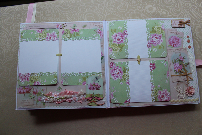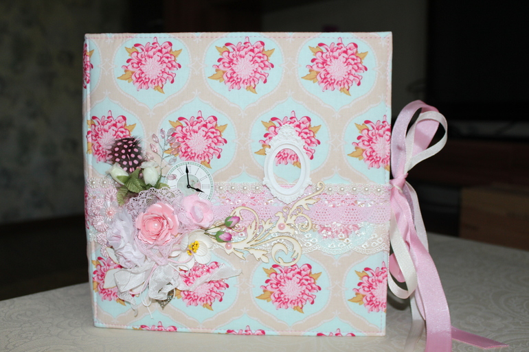 Альбомчик 25 на 25 сантиметров, в мягкой тканевой обложке, состоит из семи разворотов.