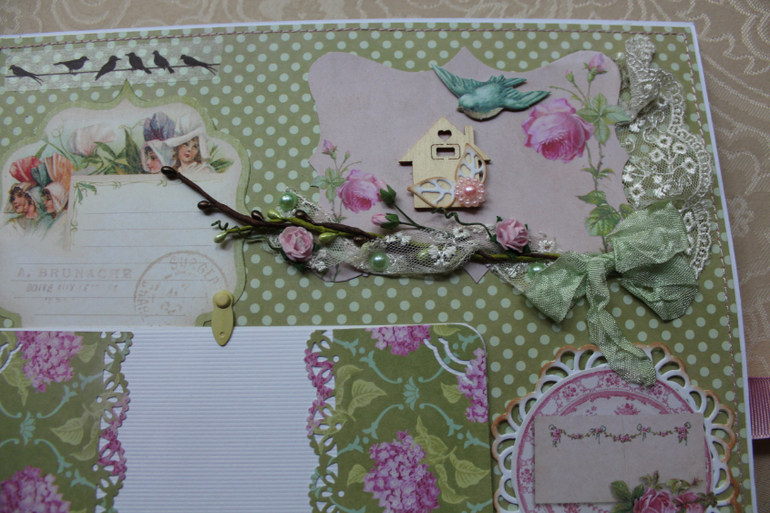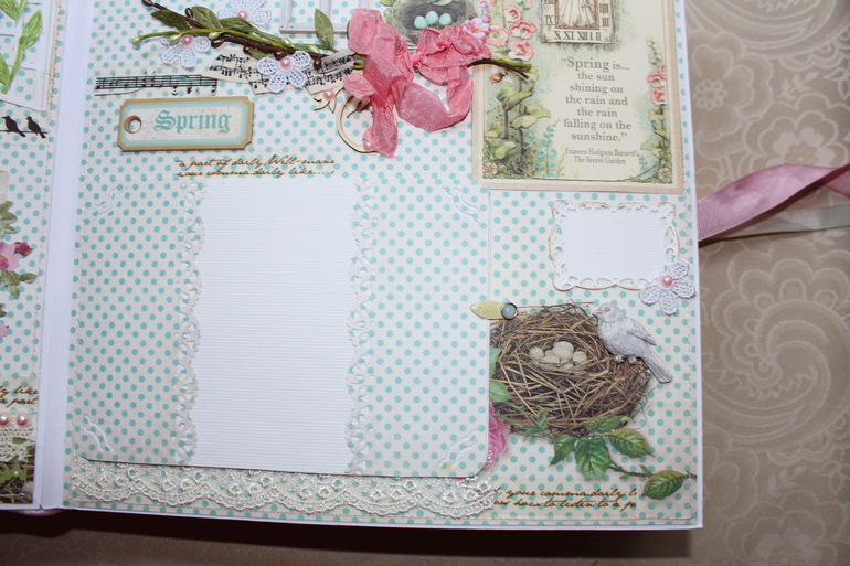 Первый разворот вмещает шесть фотографий (размер 10 на 15). Лёгкий и весеннийВторой разворот вмещает 12 подложек для фотографий (размер 10 на 15) и два окошка для памятных записей