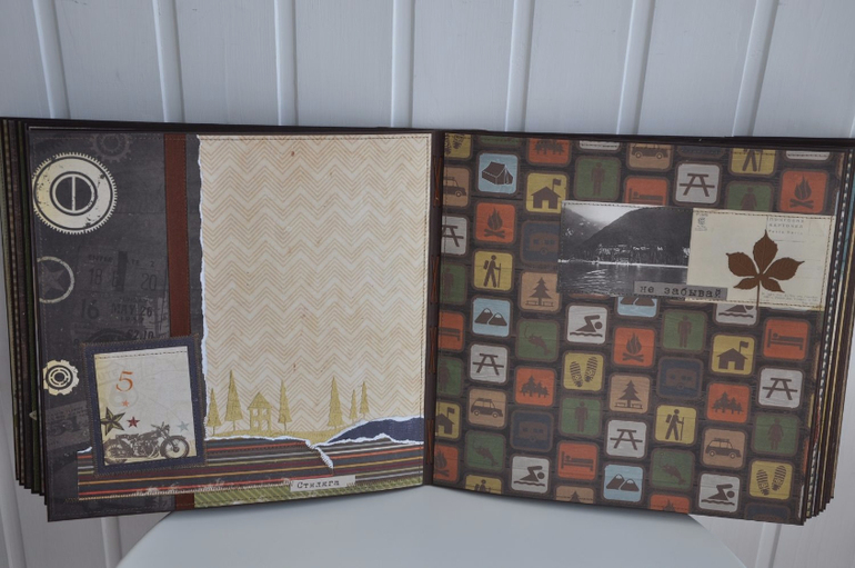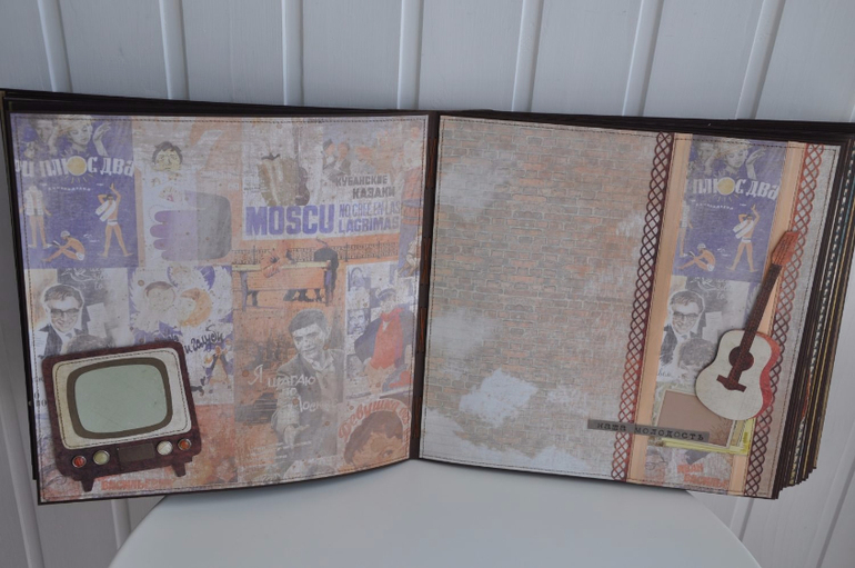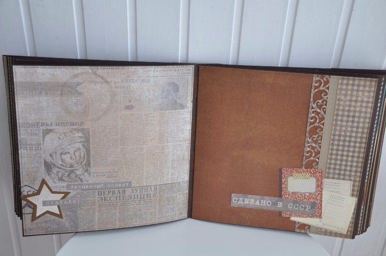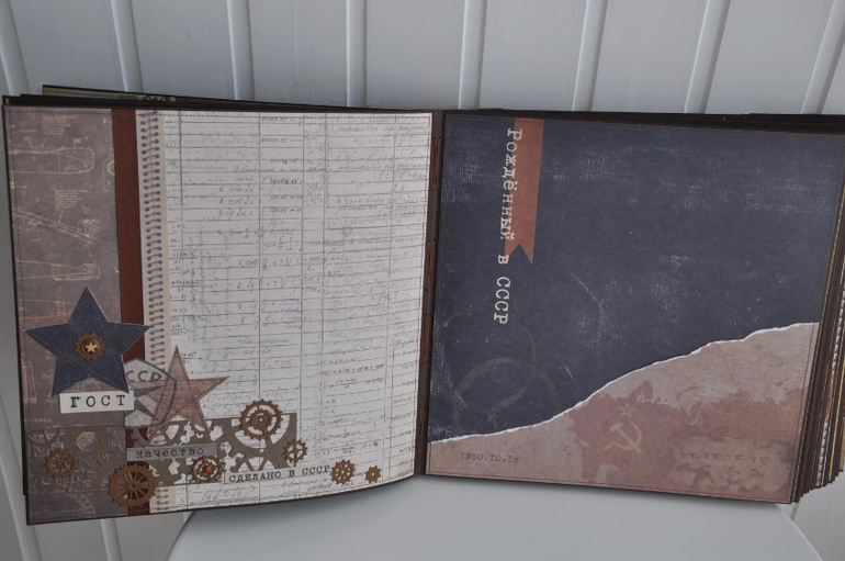 Альбом выполнен под заказ для солидного мужчины. Размер 30-30 см. 40 страниц из них 20 оформлены и 20 оставлены для семьи, которая собирается выложить туда семейные фото разных лет. Мне прислали пожелания сделать этот альбом максимально отражающие жизнь этого человека при СССР от школы до наших дней с учетом его личных увлечений рыбалкой , охотой, японией, мотоциклами.