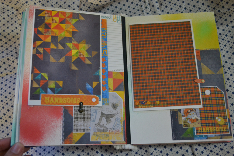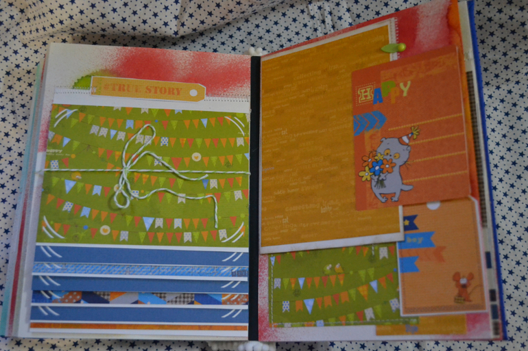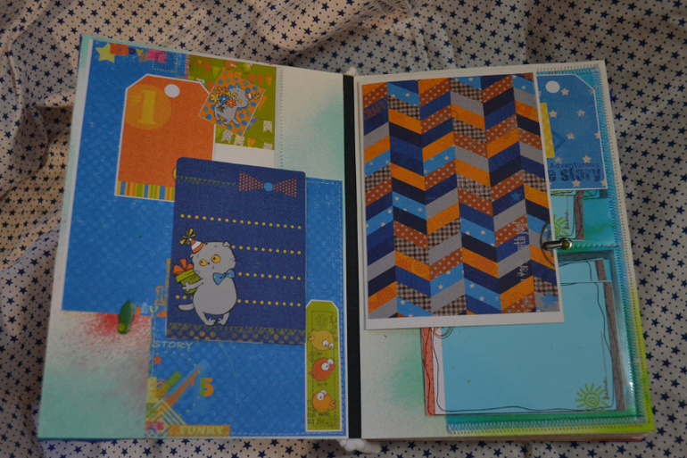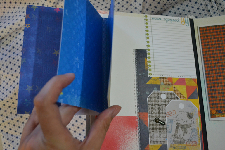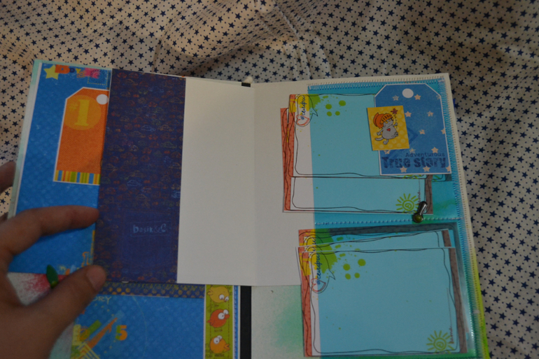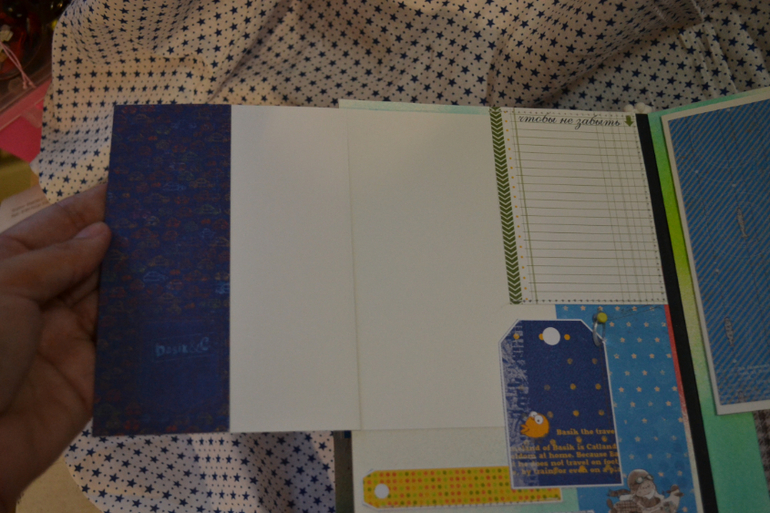 на этой страничке вот такие пластиковые кармашки- получается их 4 шт- и там есть такеи карточки с селфи))куда вклеим фото!