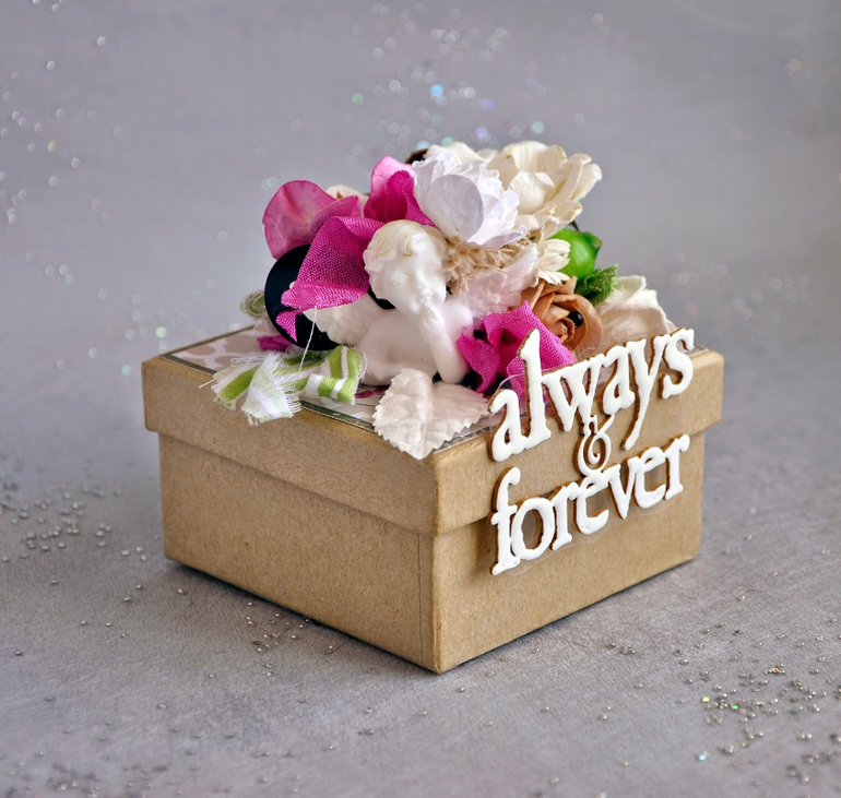 А эту коробочку я сделала еще давно для блога Scrapbee по яркой, насыщенной палитре. Коробочка уже подарена моей дорогой подруге на свадьбу, в нее мы положили денежку)