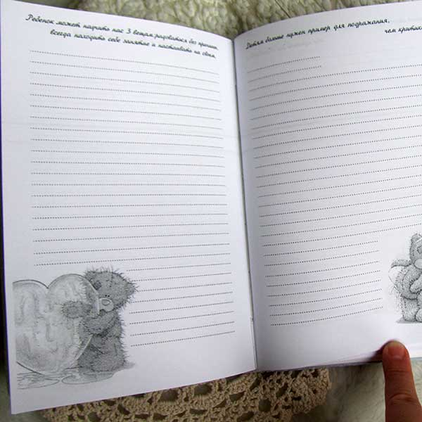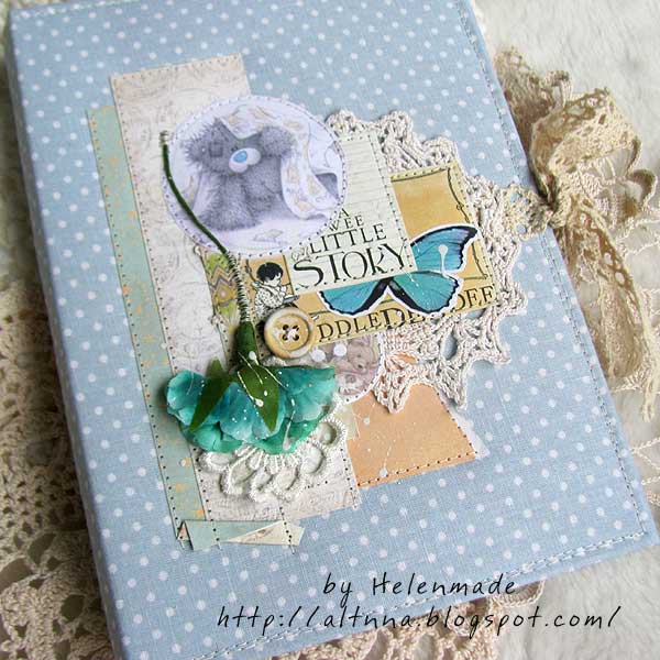 БлокнотыПривет, девочки! Я сегодня опять с маминым дневником. Малыша зовут Миша, поэтому дневничок весь в мишках)))). Формат А5, внутри 100 листов в линию с мишками,фразами про деток, есть разделители для каждого месяца с местом для фото,таблички роста и развития малыша, есть места для отпечатка ручки и ножки, графиком роста зубов, смешными фразами.Обложка обтянута хлопком,кружево ручной работы, все детали декора пришиты для прочности.