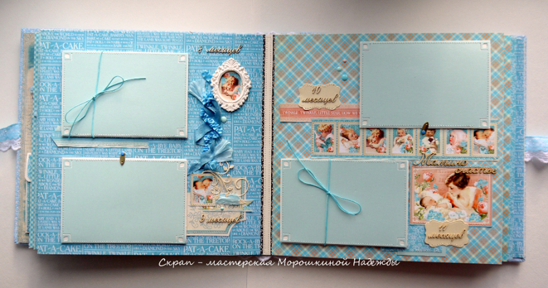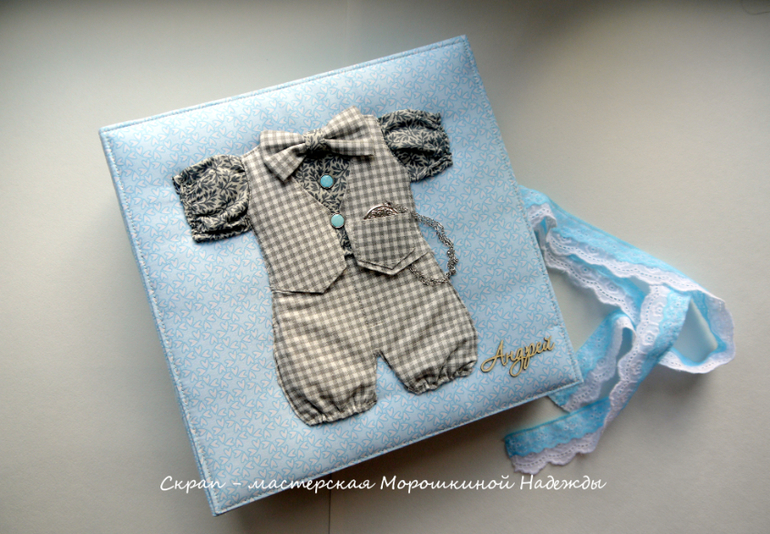 Альбомы ДетскиеДобрый день!!! Альбом для мальчика Андрея. Размер 30х30 , на 7 разворотов. Альбом вмещает 75 фото. Есть кармашек для бирочек и в конце альбома большой кармашек для карточек, других фото, открыток. Обложку альбома украшает костюмчик, в кармашке которого находится медальон )) Приятного просмотра))