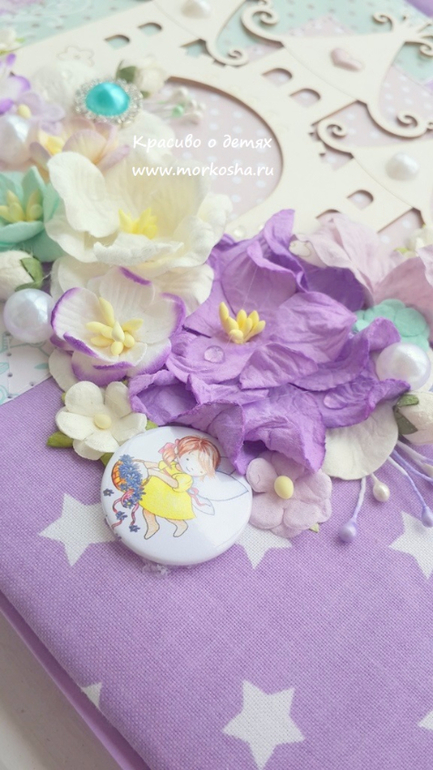 Альбомы ДетскиеНежно-сиреневый фотоальбом формата 22х25см, в который уместится до 180 фотографий 10х15см. В альбоме 20 плотных листов сиреневого картона, 6 табличек-наблюдений за малышкой от 0 мес до 1 года.