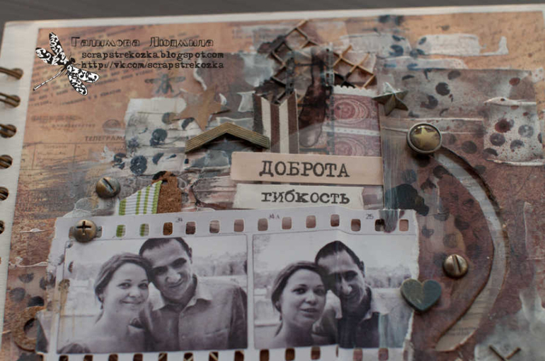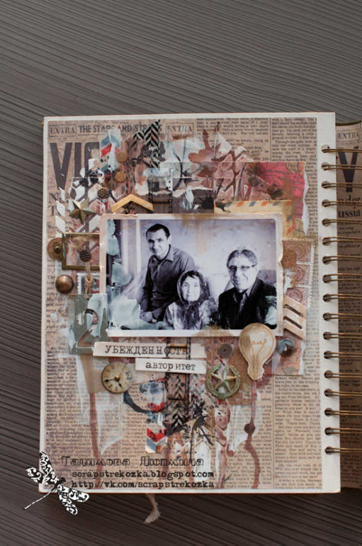 Очень понравилось рассматривать ваш альбом. Вот именно таким я себе и представляю настоящий скрапбукинг, сама пока так не умею...но очень вдохновляюсь от подобных работ.