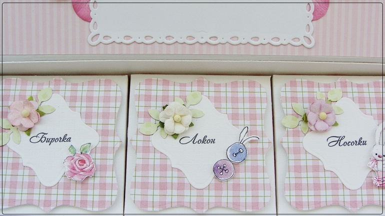 Про стили: мне очень нравится шебби, но я его никогда не делала. К микс-медиа даже вообще душа не лежит. Люблю простые и изящные работы. Часто любуюсь абсолютно непригодными для жизни работами, ну, различными там колясочками из бумаги, домиками и т.д. Однако, очень хочу сделать шедоу-бокс с фотками моих девчонок. Нравится американский стиль, но действительно крутых мастеров в нем мало. В этом плане люблю работы Кати Вуколовой. Сама я никогда не задумывалась, есть ли какой-то определенный стиль в моих работах.