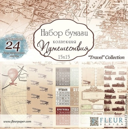 Набор бумаги "Путешествия" 15х15, 24 двусторонних листа, 17 дизайнов. В наборе вы найдете все фоновые листы данной коллекции по 2 экземпляра (лицо + оборот) + карточки, надписи, листы для вырезания.