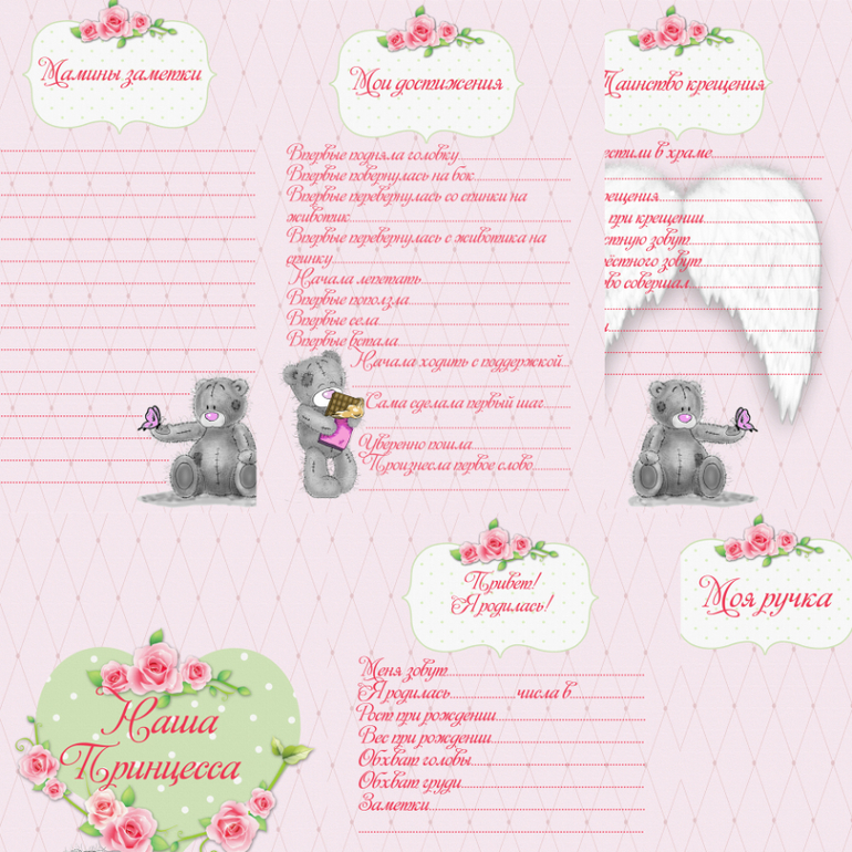 Странички с Тедди для маминого дневника