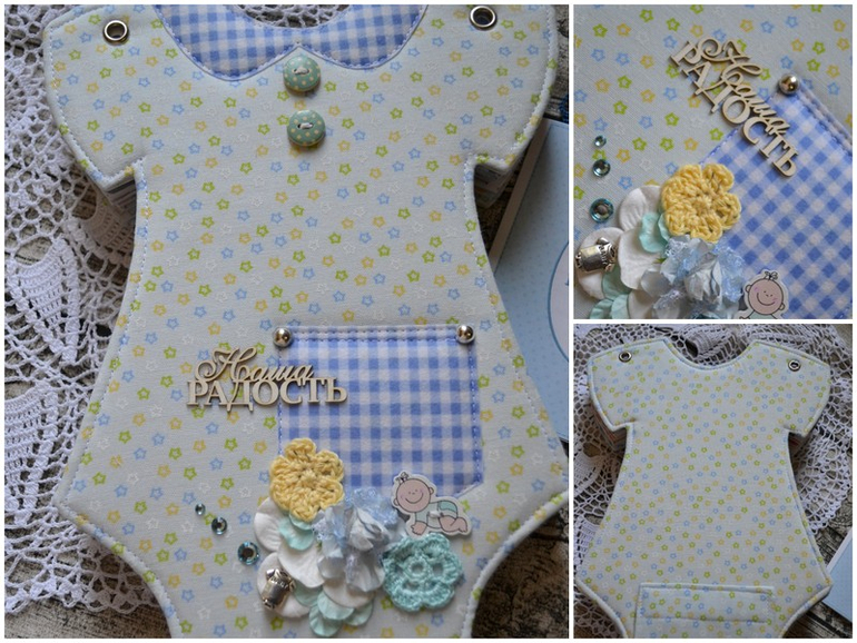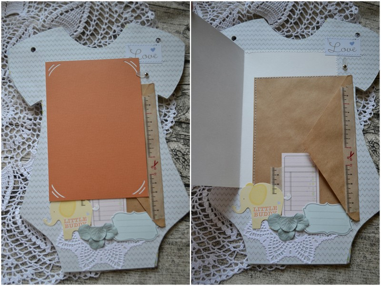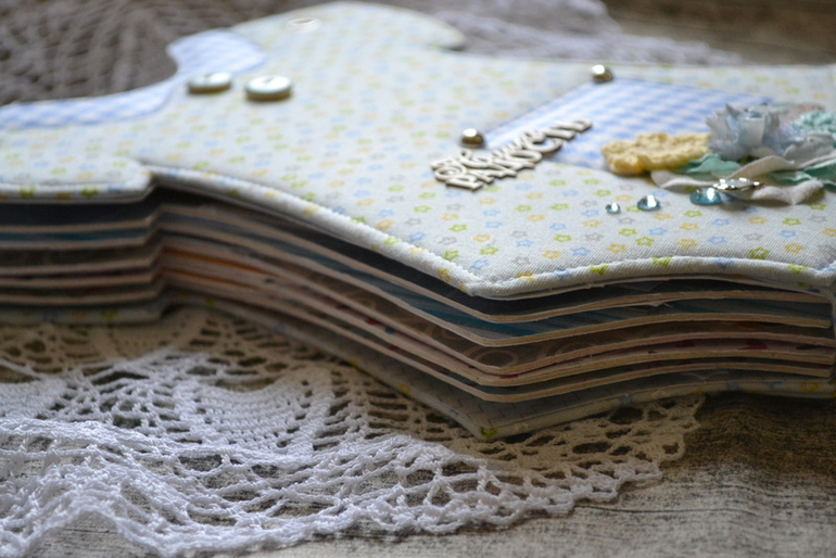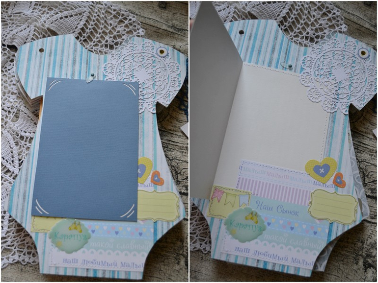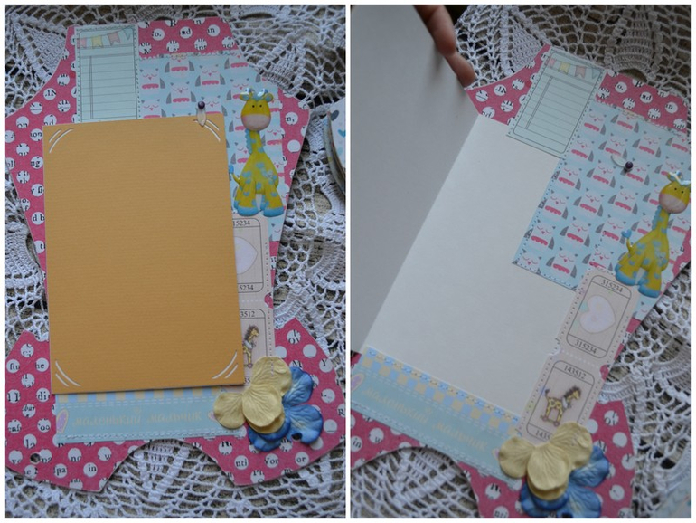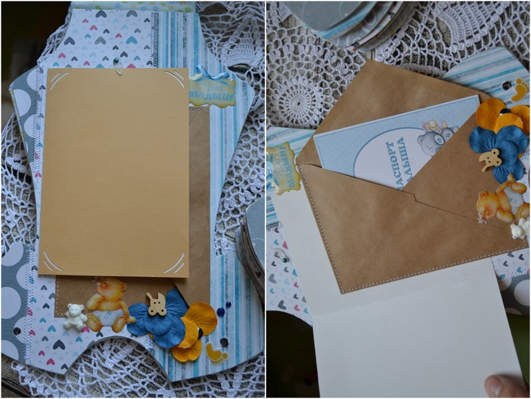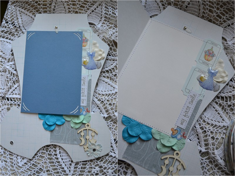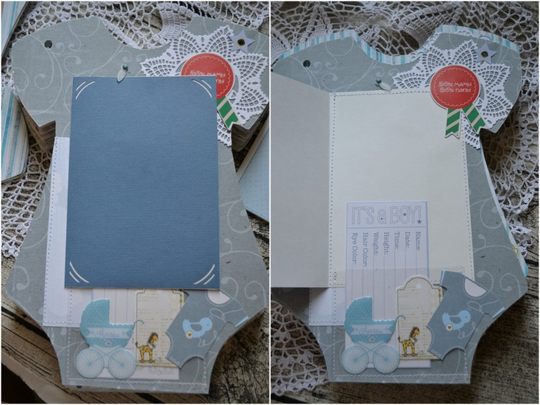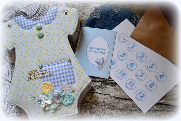 12 страничек- на каждой до 3х фото,2 конвертика и паспорт малыша