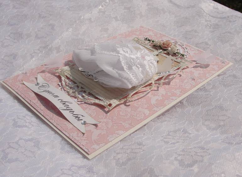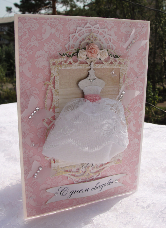 Открытка большая 15*20 см, и я все не могла ничего на нее придумать, все как-то пусто получалась. Поэтому я\ решила сделать платье по-больше и попышнее) Делала без настроения, но результат мне нравится! Интересно ваше мнение. На критику не обижаюсь)