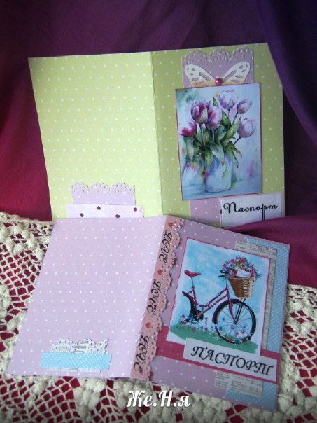 Обложки на паспорт и свидетельстваС приобретением бумаги " Хорошее настроение" от Скрапмира, действительно у меня появилось хорошее настроение и вытворяются теперь вот такие вещи.
