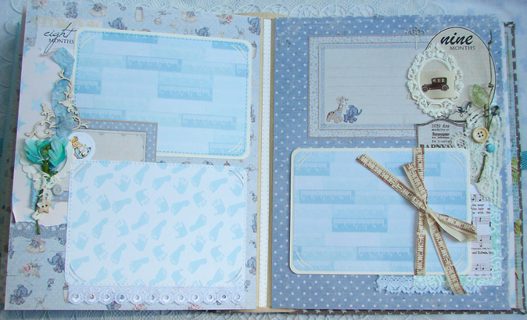 Страницы альбома разбиты по месяцам первого года жизни крохи.