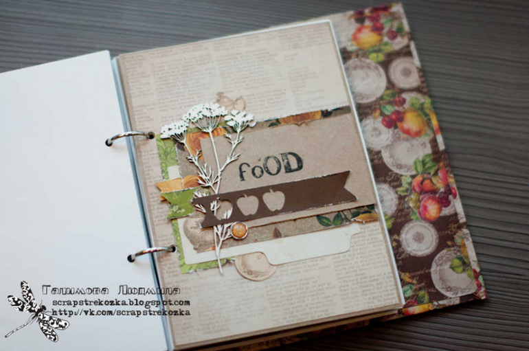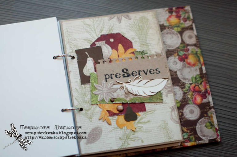 В общем-то коллекция очень специфичная, но с другой стороны - разносторонняя. Как мне кажется, мне удалось не скатиться в аляповатые фрукты-овощи, а сделать что-то интересное. Карточки и высечки я поэтому сразу отложила - слишком они яркие, хотя пару тежиков можно было оттуда использовать, но решила, что обойдусь. В итоге хотела еще побрызгать чернилами-красками, но решила, что не стоит увлекаться. На мой взгляд и так гармонично получилось.