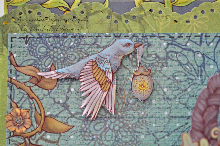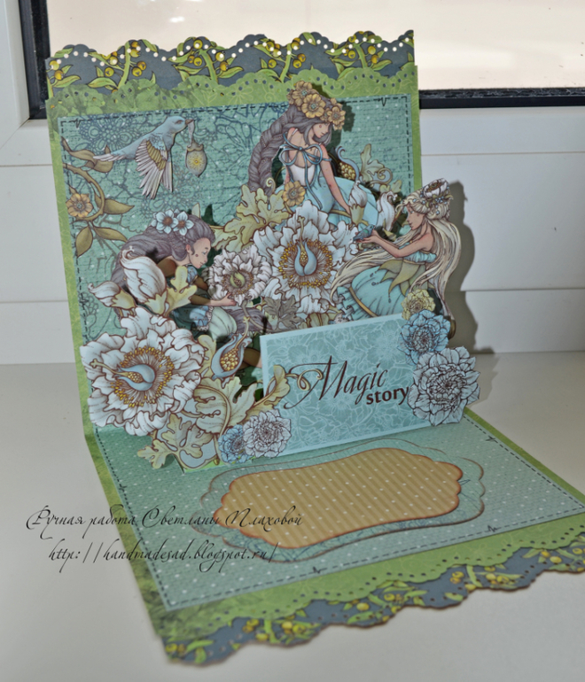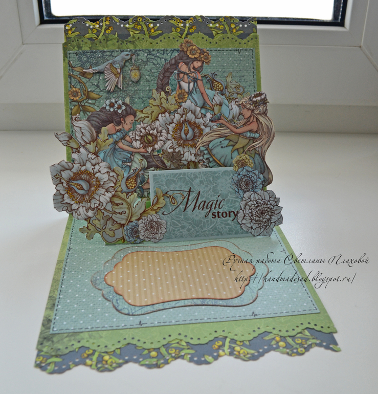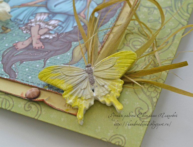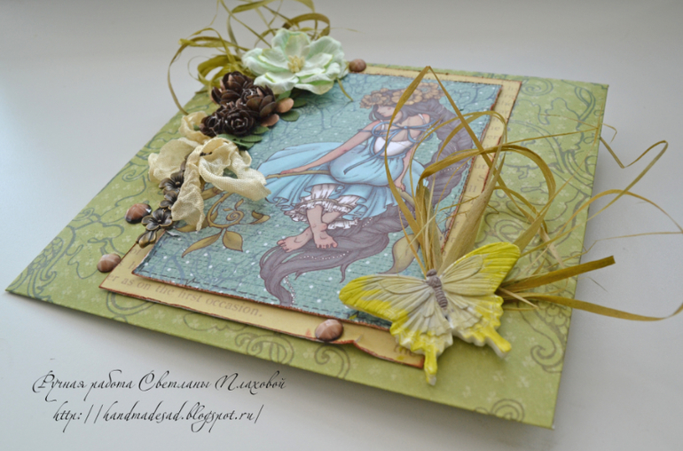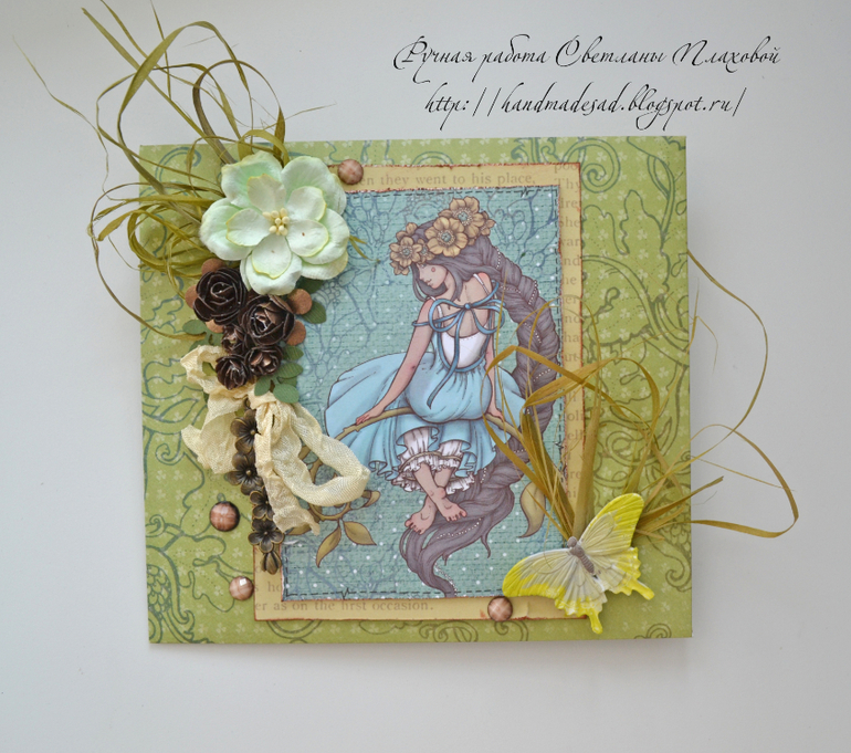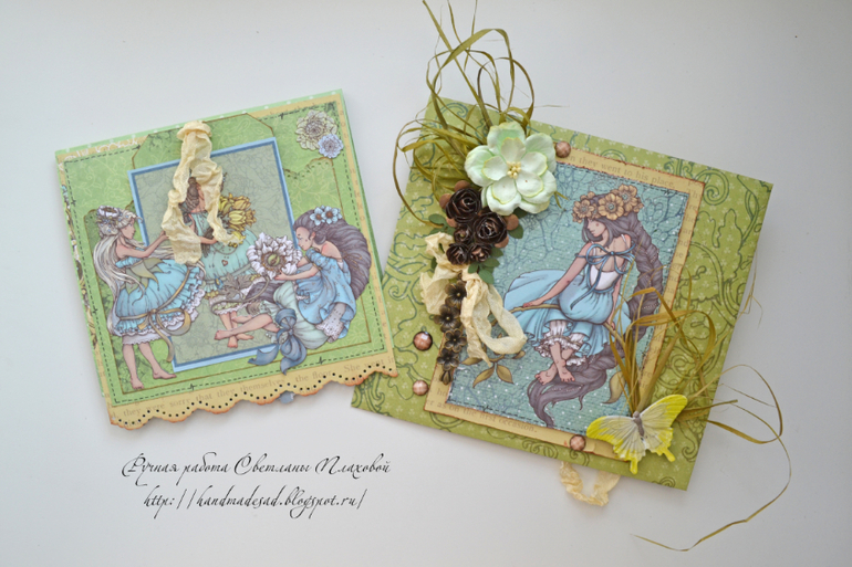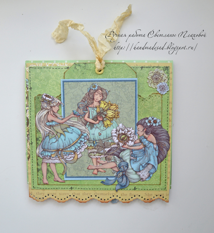 Первая открыточка с очаровательными Феями в летней гамме - голубой, салатовый и желтый.