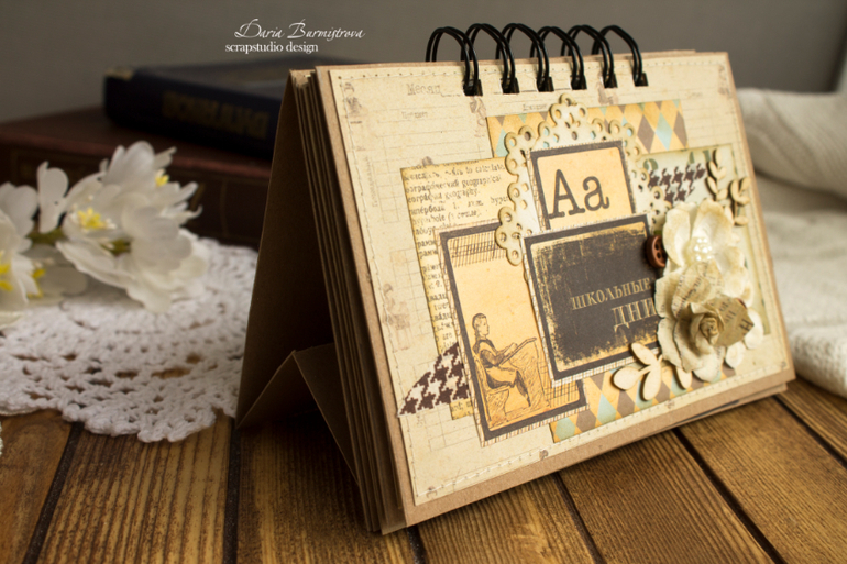 Сегодня я покажу вам календарь на школьную тематику, да не простой а с функцией фотоальбома! Календарь из крафт картона, бумага школьной коллекции, размер 10х15. Календарь выполнен в сдержанных строгих тонах с минимумом декора- его можно подарить учителю любого возраста и нравов) Будет прекрасным украшением рабочего стола и останется приятным воспоминанием в жизни)