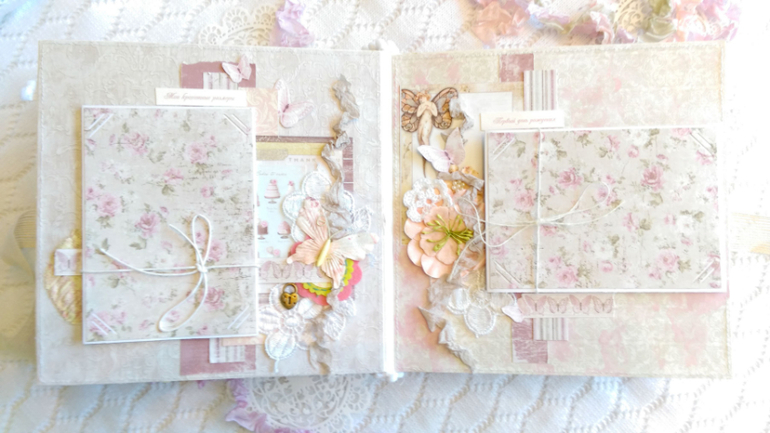 Опять к вам с альбомом, а то я все делаю, а обрабатывать и показывать совсем нет времени. Альбом 20на20 нежнейший из новой бумаги Фабрики Декора, Майи и Примы для маленькой девочки. Уже мой 70й). горжусь, движемся по чуть-чуть к 100, и не вериться, что почти за два года столько можно успеть.