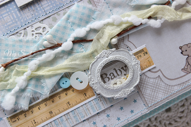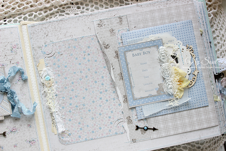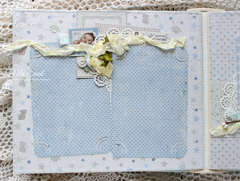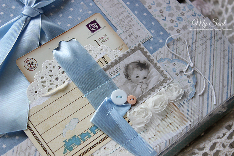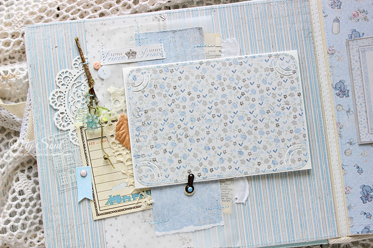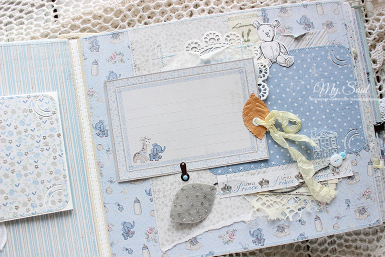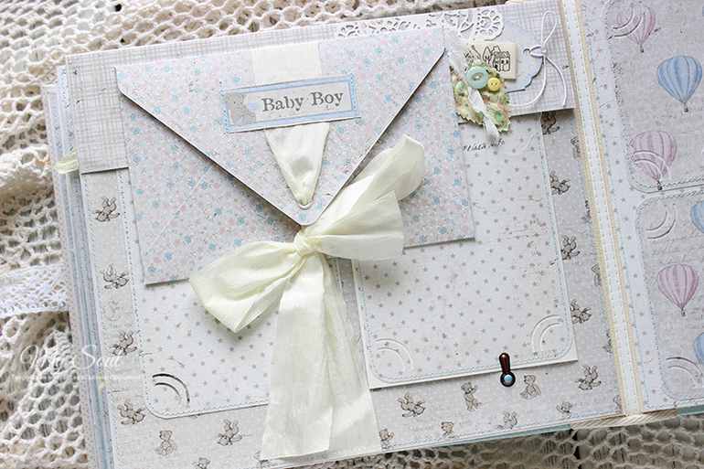 Вторая страничка - про новорожденного малыша - с карточкой-метрикой, конвертом для бирочек.