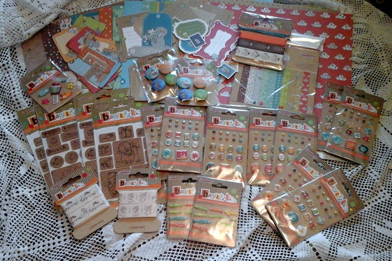 ПОКУПКИ, ОТЗЫВЫ О МАГАЗИНАХ, "где купить?"Вот и у меня появился всеми любимый Басик...,да не просто бумага,а еще и с украшалками: брадс, пробковые стикеры, вырубка(вырезала из 3х листов с картинками), ленты, фишки, скрепка))))