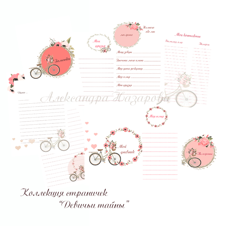 Предлагаю вам мою новую коллекцию электронных страничек для блокнота "Девичьи тайны".