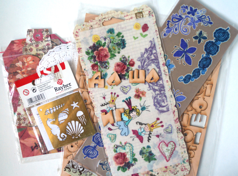 Но это еще не все! Тут и 2 вида натирок, и многоразовый трафарет на морскую тематику, и чипборд-алфавит, и набор тегов, салфеточки. Настоящие летние сокровища!Лена, большущее спасибо за возможность поучаствовать и выиграть такой отличный приз!