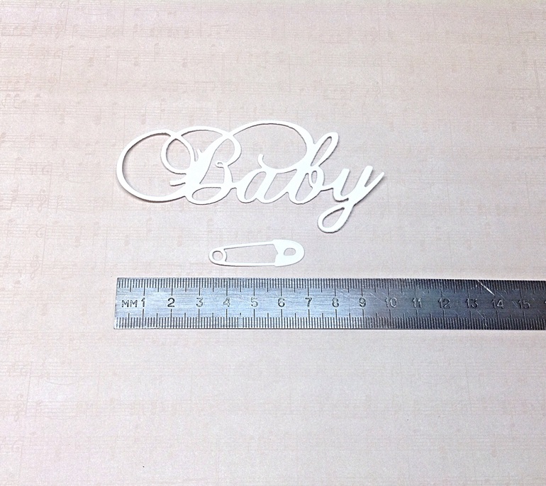 Надпись baby и булавка, размер букв 10х3,8 см, булавка 3х1 см. Цена 10р