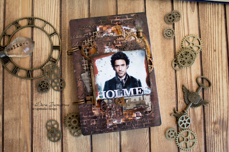 Сегодня у меня красавец-мужчина)) Блокнот А6, 60 листов, Обложка деревянная (!), стиль стимпанк с применением миксмедийных техник. Цена 1000руб