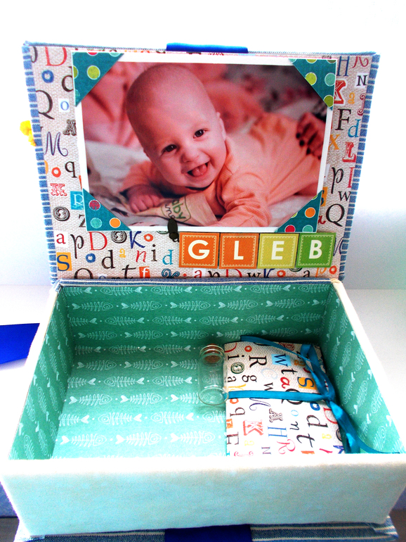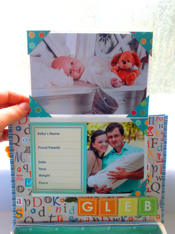 Решила я немножко разбавить романтичный верх весёлой внутренней отделкой) как мальчишки) Также здесь красуется имя самого малыша + раскладушка с фото:
