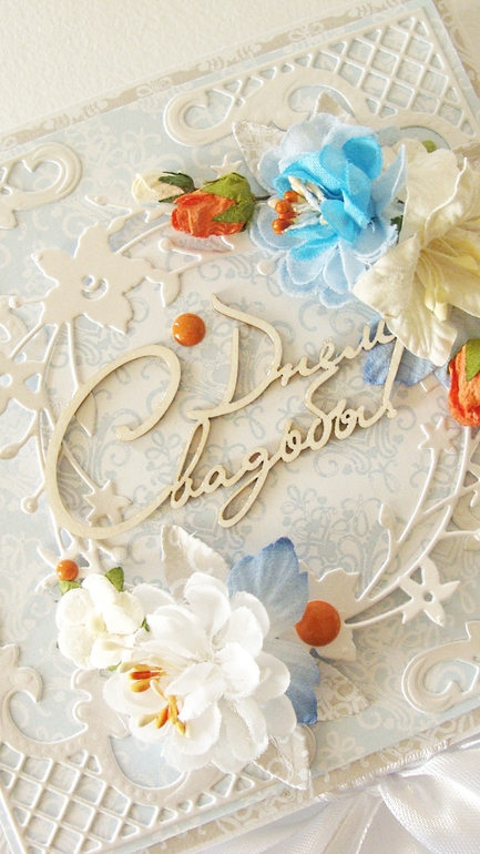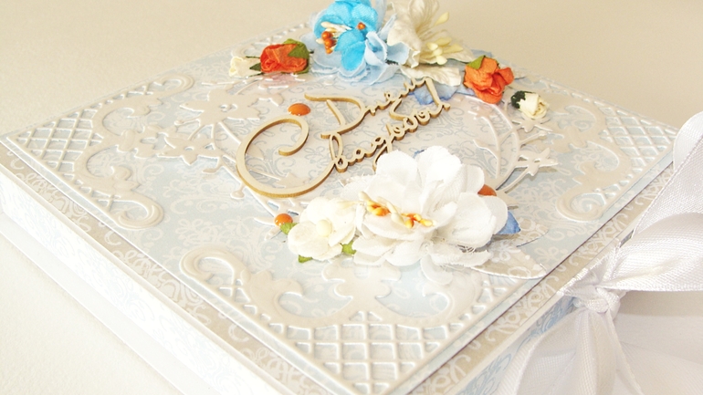 2. Осень, как известно, пора свадеб. Вот и мне поступил заказ на свадебную коробочку. Попыталась соединить в ней последние капли голубого цвета на небе, жемчуг свадебных платьев и яркость осенних красок. Получилось ли -судить вам
