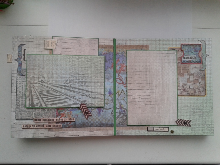 Мне он очень нравится. Хотя когда получила бумагу, немного растерялась, что с ней делать. Поскольку пока ждала ее, альбом представляла по другому, в американском стиле что ли. А набор не подходит под этот стил, как мне кажется. Потом случайно нашла и прочитала в одном из блогов пост Оли Pastila о смысле в работах , она писала на примере своих работ в стиле грандж. Мне очень понравился пост. Я не претендую на какой то смысл или стиль в этом альбоме, но после прочтения поста, у меня быстро сложились все развороты, бумага показалась не такой "страшной ", легко с ней работать было.