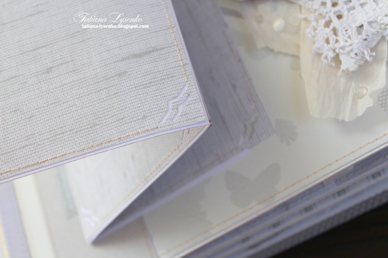 Настя, ты такая умница! Я бы тебе за усердие премию дала).Прошить вручную, да ещё так ровненько!. Молодец! Мне тоже нравится палитра, так нежно. Разворот что надо получился.