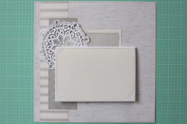 Далее, для того, чтоб оттенить вырубную салфетку, добавить фактуры, воздушности, нежности и многослойности я наслаиваю отрез натурального хлопка, подходящего мне по цветовой гамме и размеру