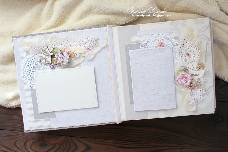 Я в числе опоздавших. Причина уважительная - копала картошку! Вчера ночью уже доделывала... Старалась соблюдать рекомендации Татьяны - слоев вроде хватает, воздух тоже присутствует, не хотелось перегружать странички декором, излишними элементами... Альбом создаю просто так, по настроению, конкретного хозяина пока нет...