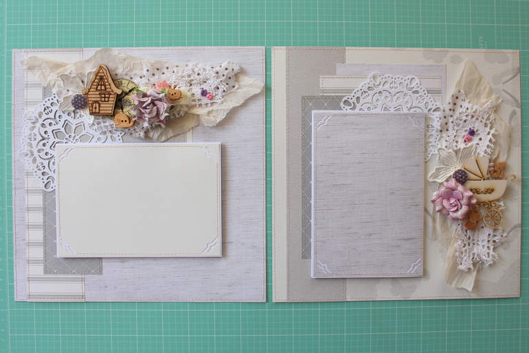 Раскладываю я обе страницы рядом для того, чтоб не упустить гармонию и "связать" визуально страницы в декоре