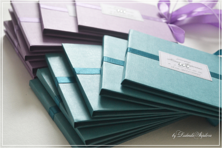 Конверты, альбомы для дисковРазмер 13*13 см., дизайнерская бумага, цвета изумрудный и фиолетовый