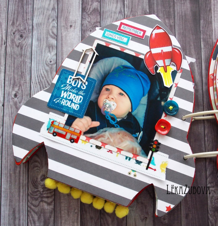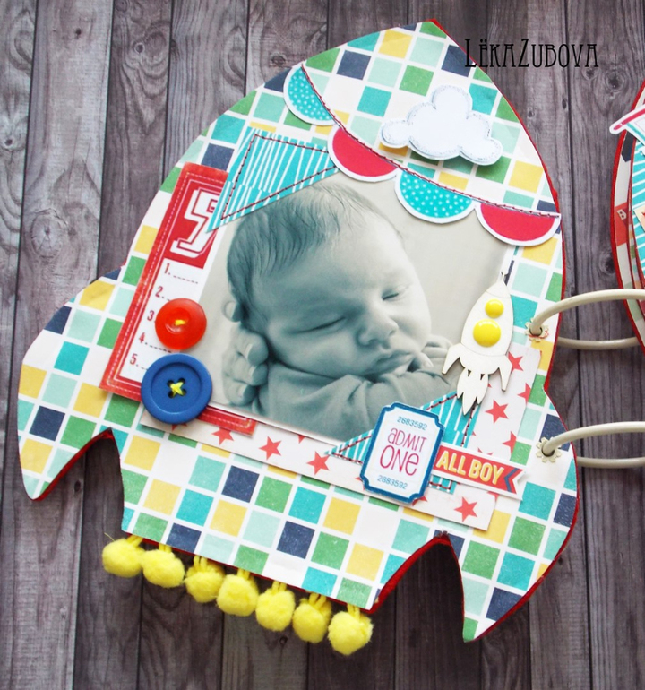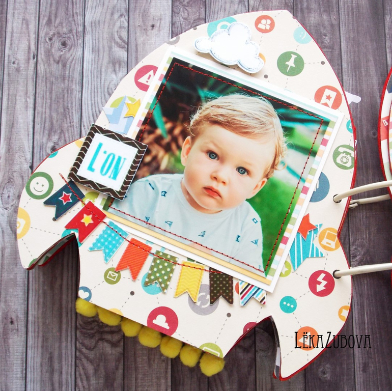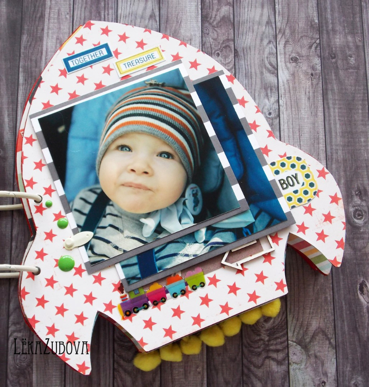 Альбомы ДетскиеАльбом для племянника Ванечки. Имеет свою небольшую предысторию) В преддверии праздника решали с мужем, делать ли что-то в добавлении к обычному подарку в виде игрушки и рубашки для настоящего мужчины. Склонялись, что нет, так как обычный альбом не хотелось, а необычного в голову не приходило. И тут, на счастье, девочки на ББ опубликовали результат СП с Таней Дудкиной, это был альбом в виде ракеты. Я влюбилась в него тут же! Но в СП я никогда не участвую, к сожалению, не могу сказать с точностью, что уложусь в отведенные сроки, а подводить не хочется. Так вот, показала альбом мужу, ему очень понравилось и решено - альбому быть) Вот, что вышло) Сестра очень рада, ей понравилось)