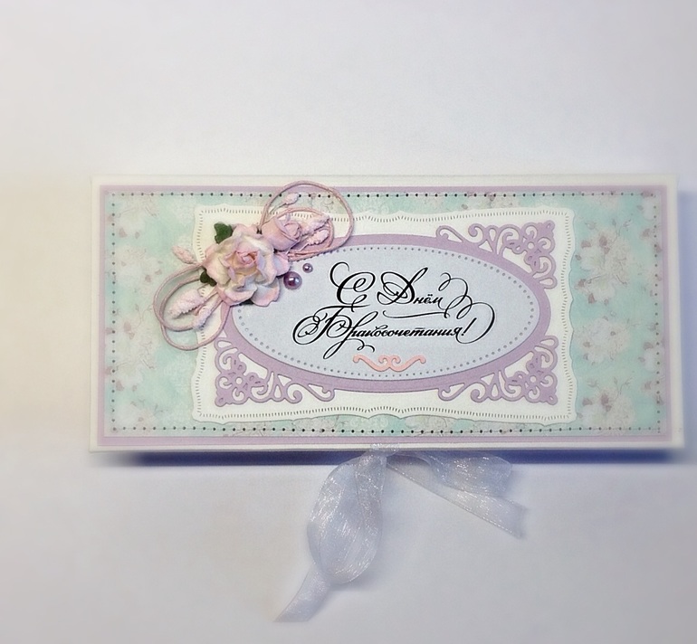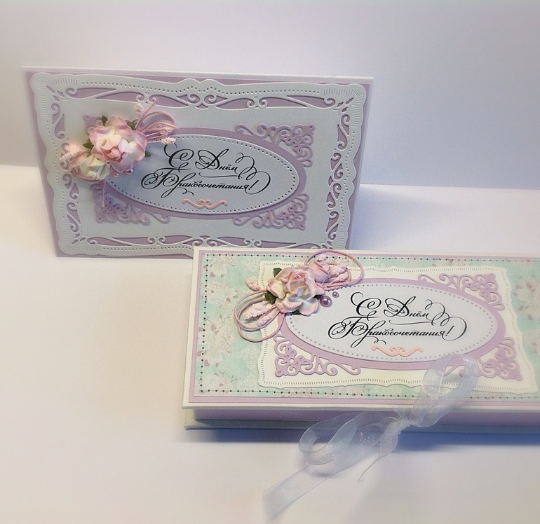 Открытки, приглашения, визиткиВсем доброго времени суток! Хочу показать вам еще один комплект на свадьбу- открытка и коробочка для денег в нежных сиреневых тонах!