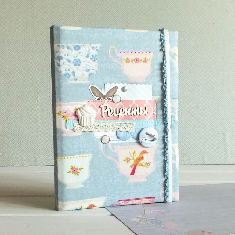 Размер А5, внутри около 80 страниц под запись рецептов, закладка, кармашек.