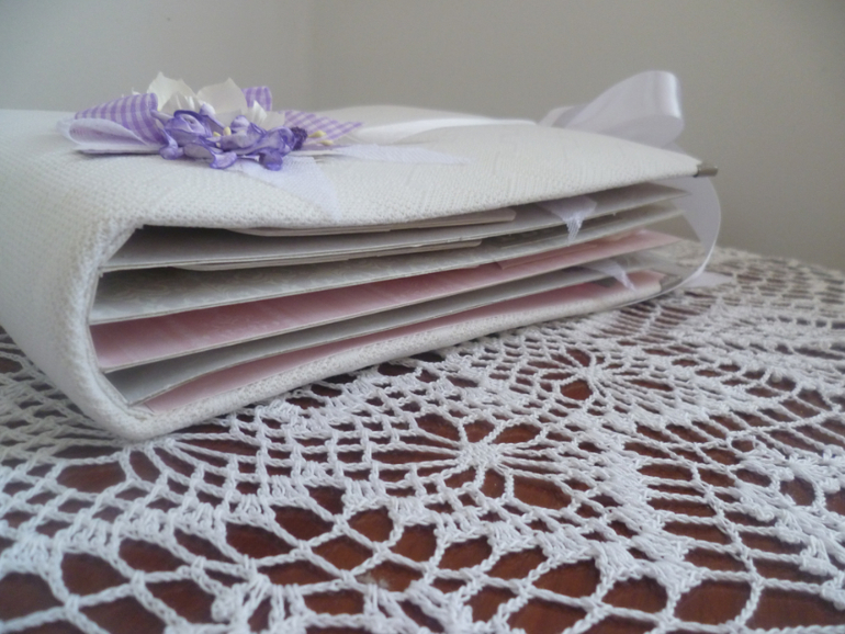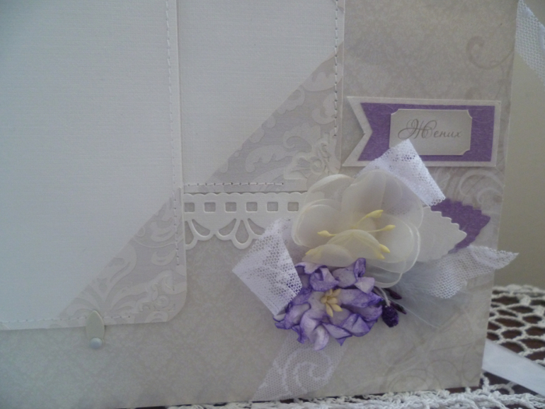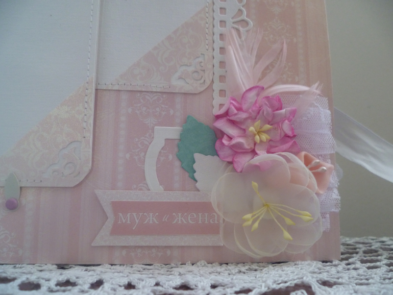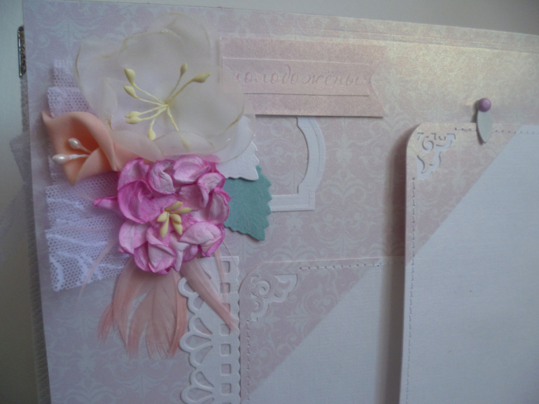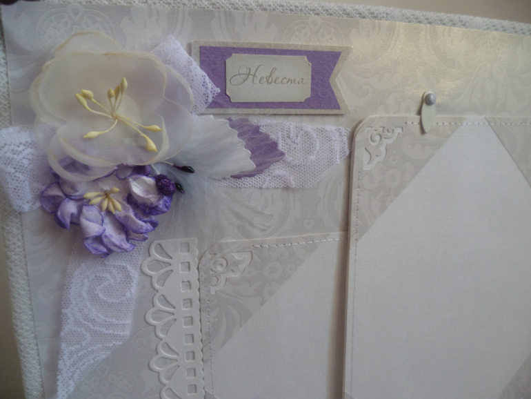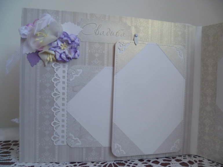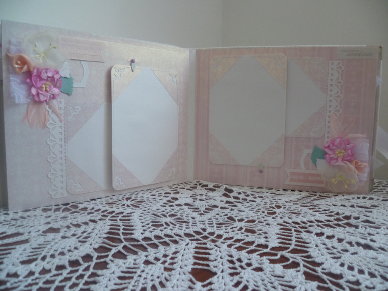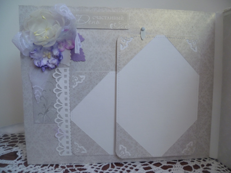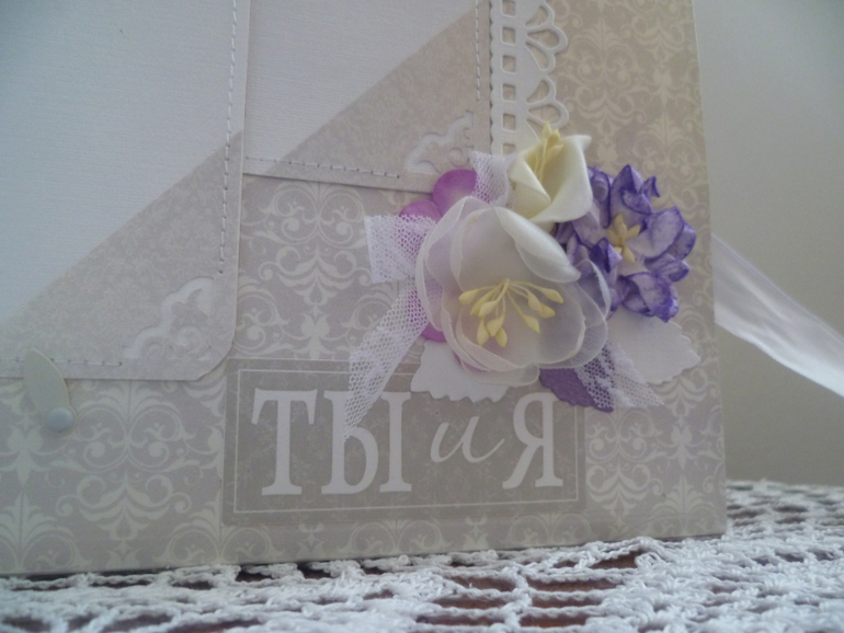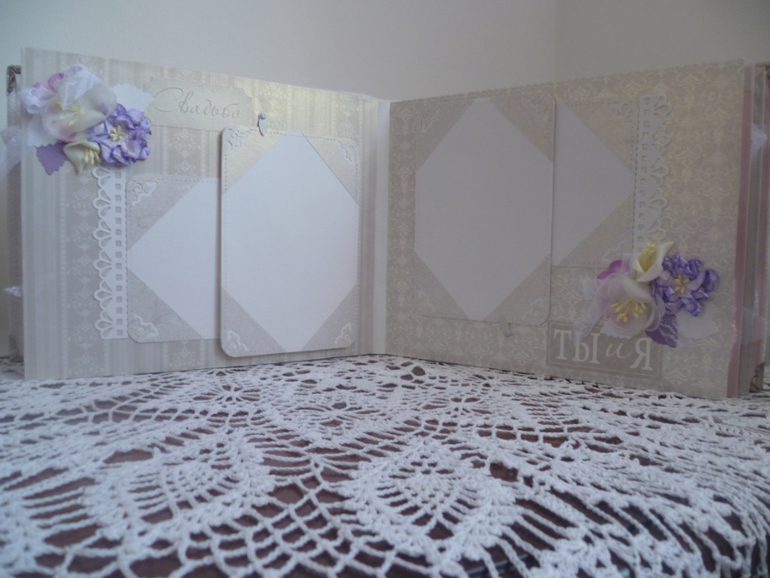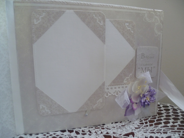 выдержанный альбомчик получился. Смотрится очень красиво, мне понравился. А цветочки белые Вы сами делали? Можете МК поделиться?