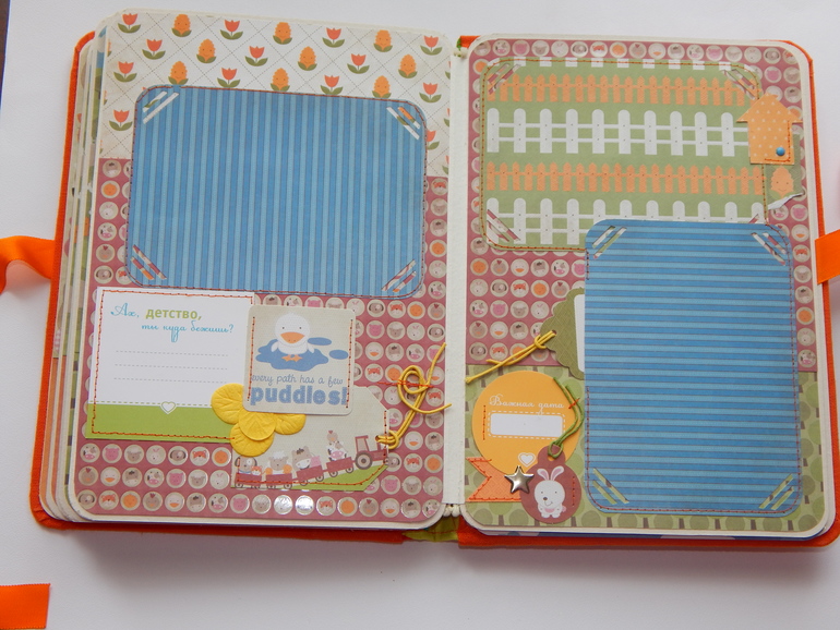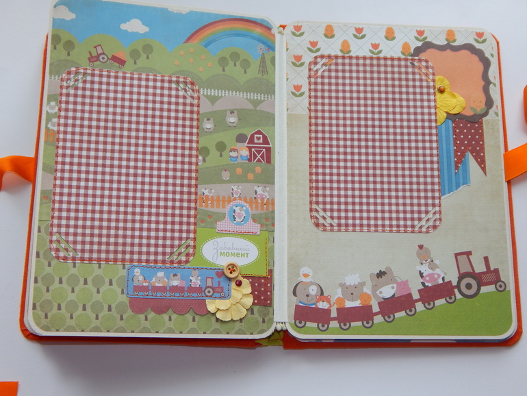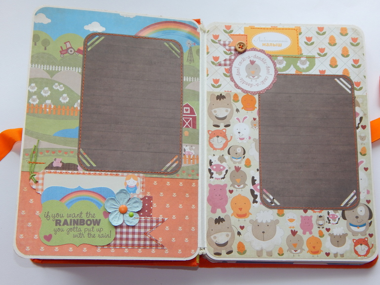 приветик, хочу показать небольшой альбомчик на 6 разворотов размером примерно А5, на 16 фото 9х13! Мне кажется он хорош для фотосессии в кантри стиле, или фото из деревни, а может просто с фермерского двора или контактного зоопарка)))пыталась сделать альбом и чтоб совсем не осталось обрезков и целых листов, потому что остатки вечно лежат и не знаешь куда их пристроить, хотя я люблю обрезочки)просто у меня их уже скопилось прилично)но немного не удалась моя затея из набора 15х15(в наборе были еще высечки) остались небольшие обрезочки(Не смогла я их впихнуть для многослойности, еще не умею хорошо наслаивать бумагу, все мне кажется не в тему, слишком многои тд, короче боюсь переборщить...В общем вот он))