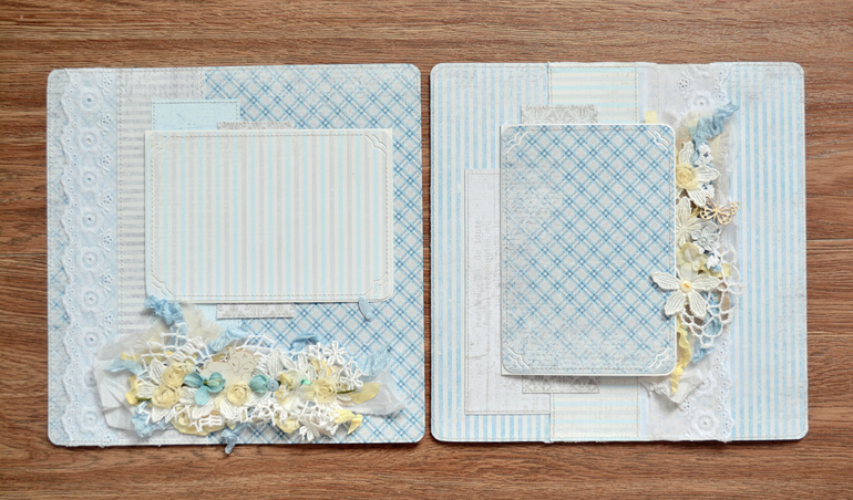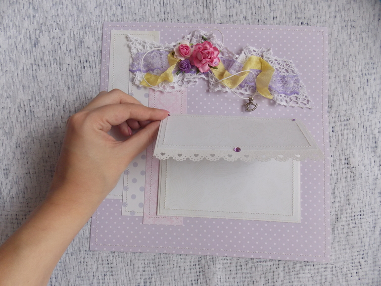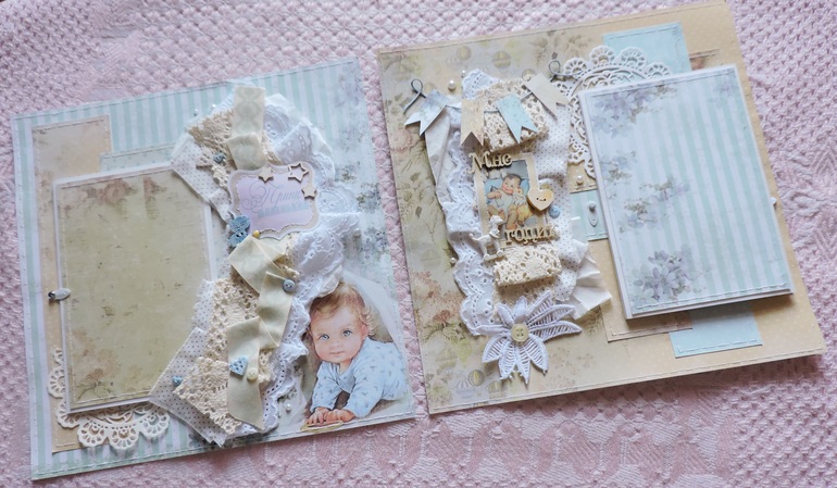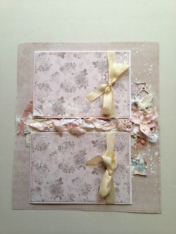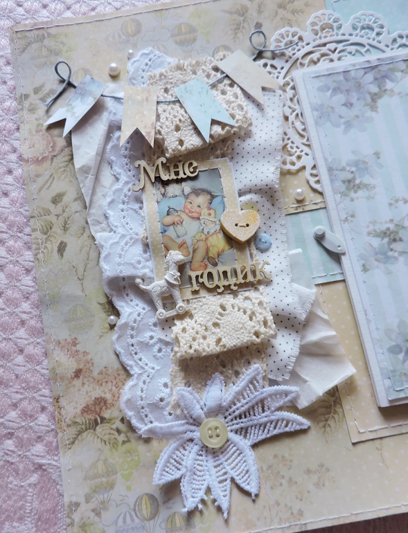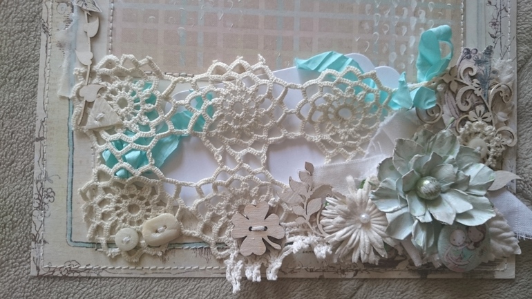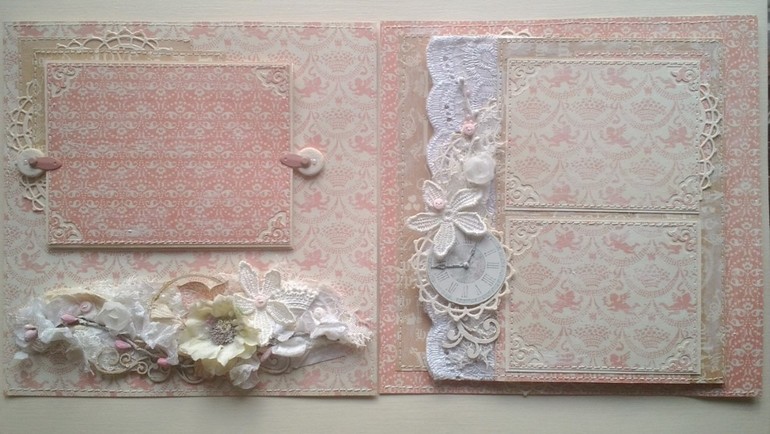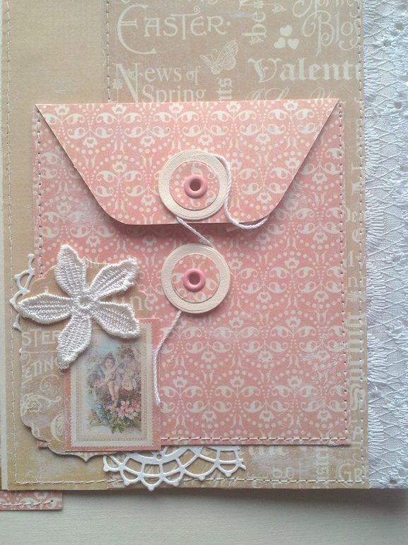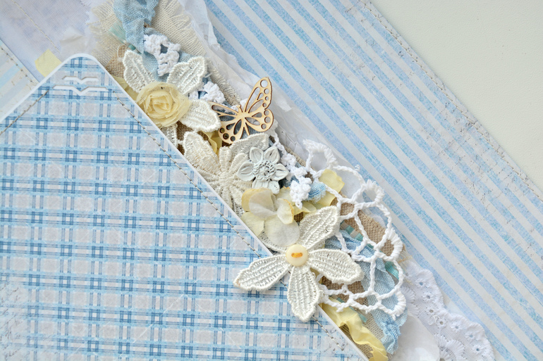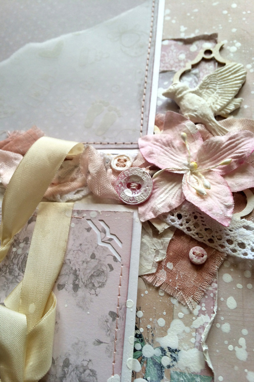 Леночка, разворот получился легким, светлым, нежным и многослойным. Молодец! Мне вот только интересно как закреплен карман? Он пришит или приклеен?
