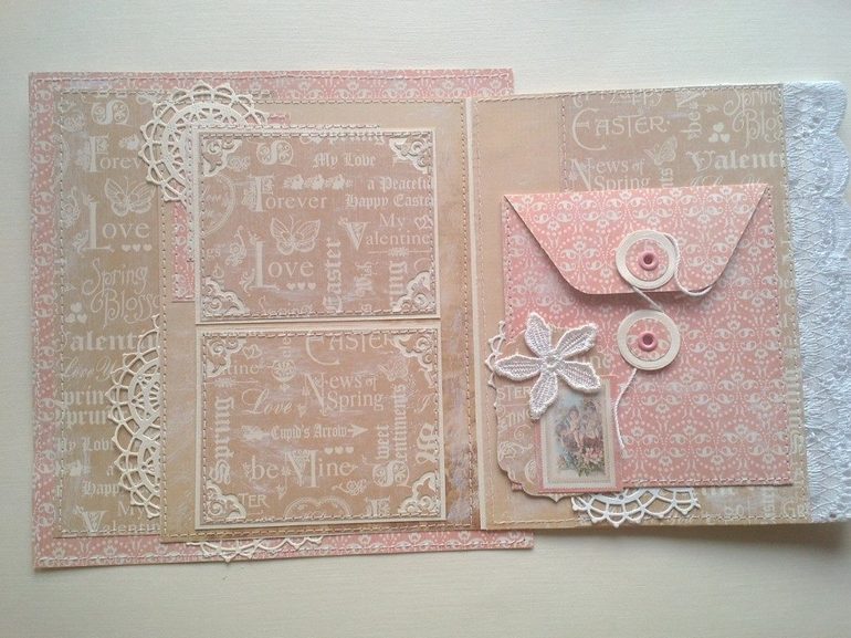 Очень нежный, и карманчик отлично вписался! У всех такие разные альбомы получаются из этой коллекции бумаги, однако каждый хорош по своему!!!