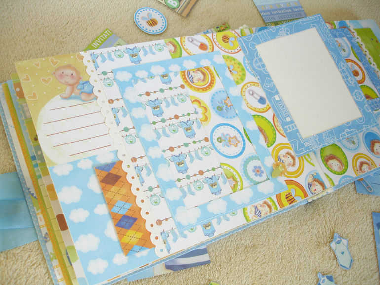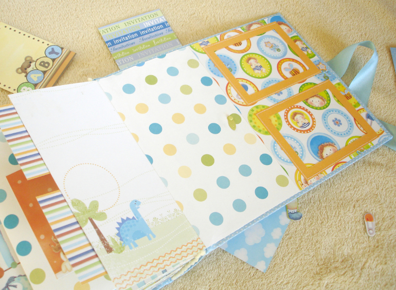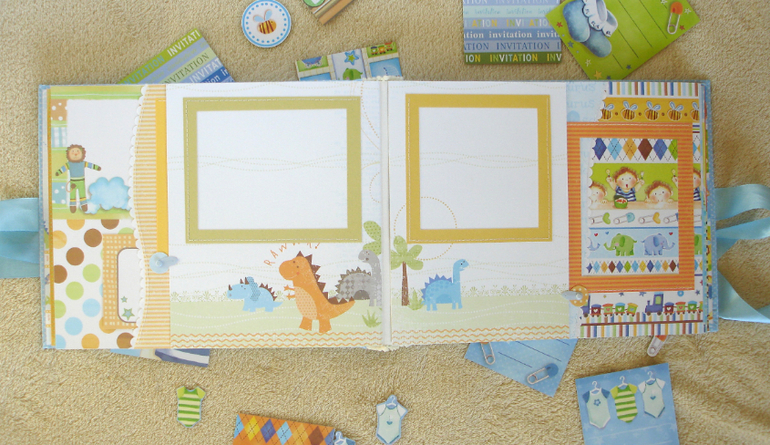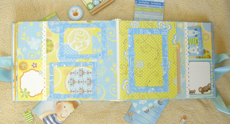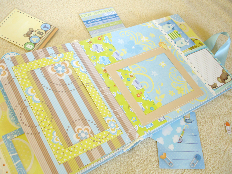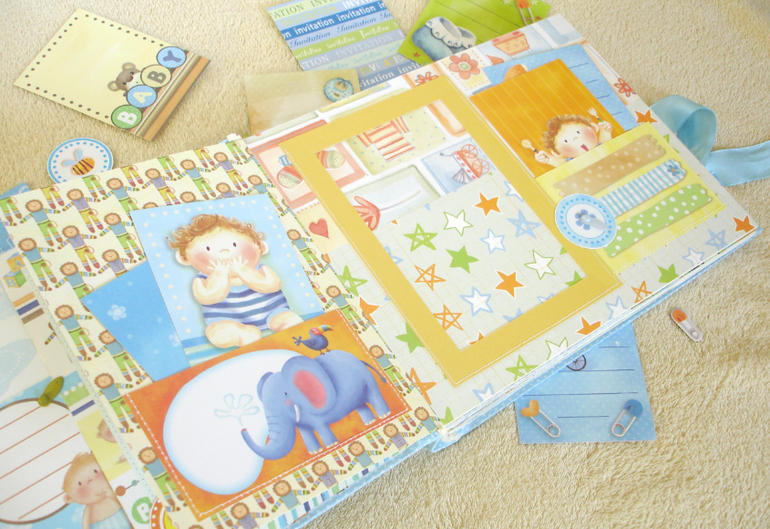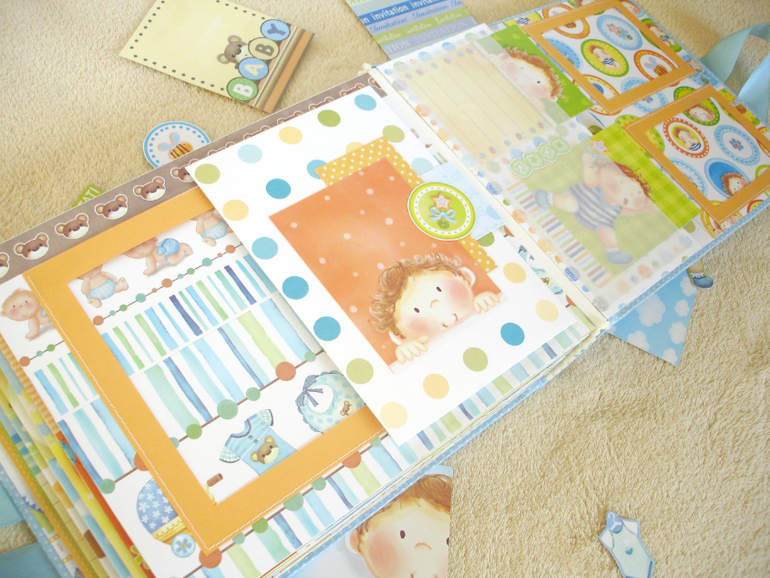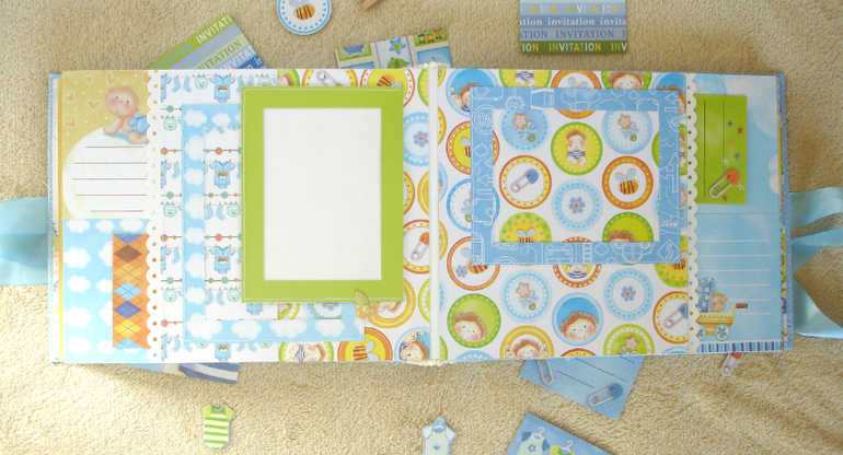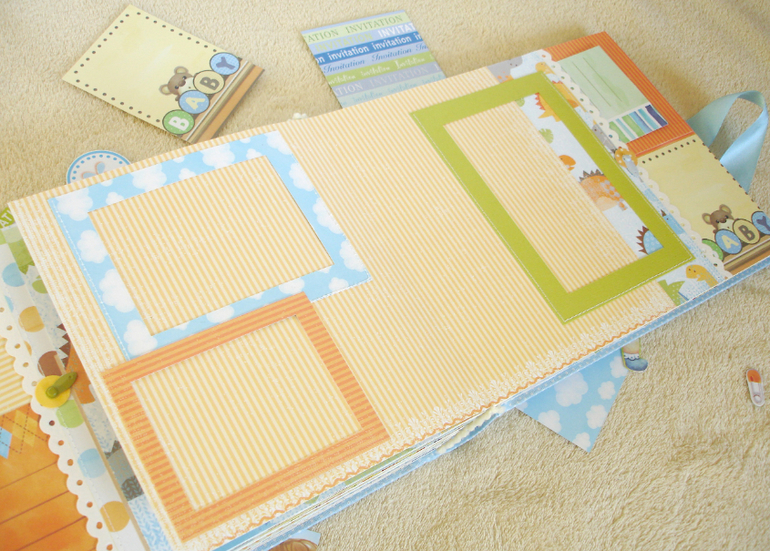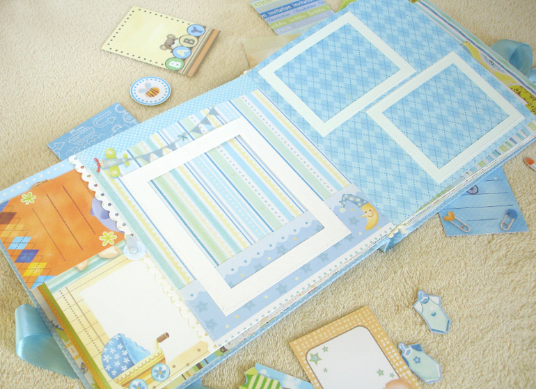 Альбомы ДетскиеОчередная моя "недоделка". Больше года лежит, вздумалось мне как-то "утилизировать" остатки бумаги из разных наборов, остаются по 1-2 листа и болтаются потом, вот решила собрать их в одном месте. Сначала дело пошло быстро, были сделаны развороты и пришиты рамки для фото, сделала переплет Виноградовский, выбрана ткань на обложку и все. Все встало! А так как иногда меня посещают разные "психозы", приспичило мне этот проект срочно выселить! Выбрасывать жалко, а чем украшать альбом - не знаю! Поэтому решила страницы вклеить, обложку сделать и продать как альбом для самостоятельного декорирования. На каждом развороте есть "открывашки", рамки для фото пришиты, но они не все рассчитаны на стандартные размеры фото!!!! Есть кармашки для карточек с важными записями, карточки прилагаются, есть конвертик. Переплет сделан для объемных украшений, между страницами 5 мм, но сейчас украшений в альбоме нет, только анкеры, поэтому он немного треугольный.
