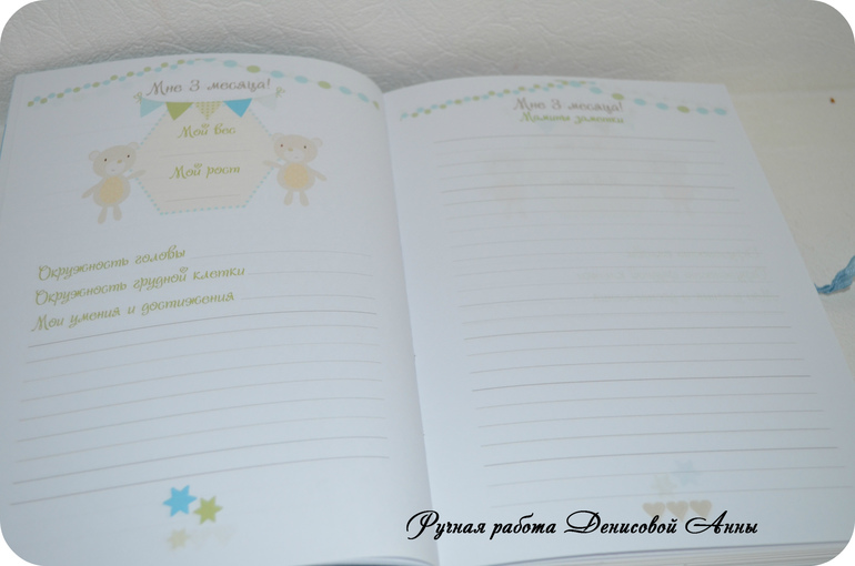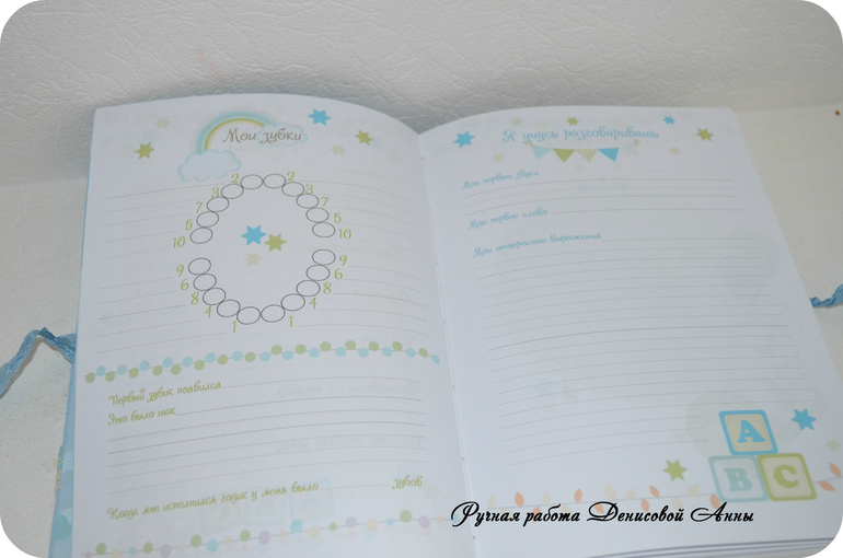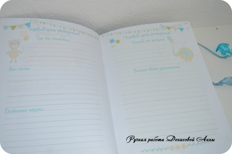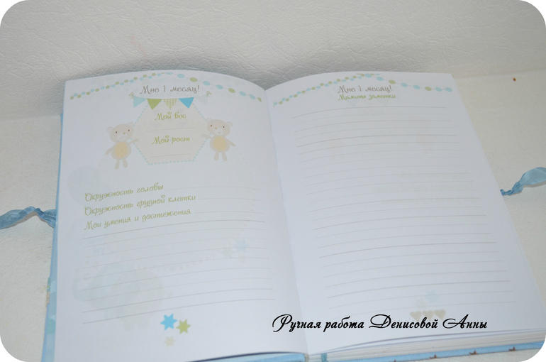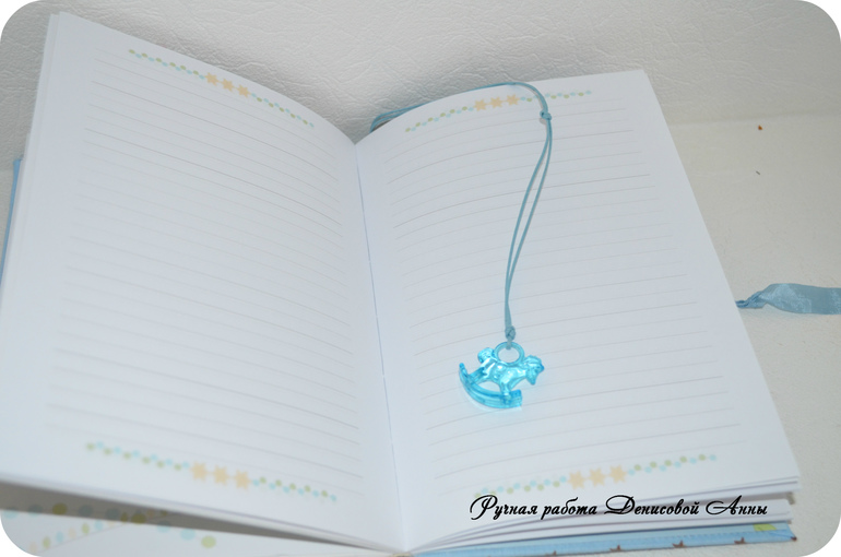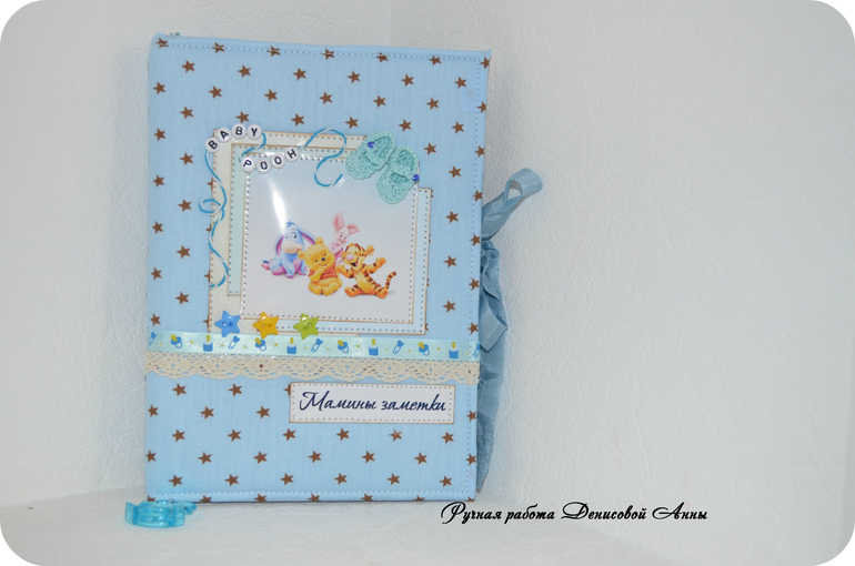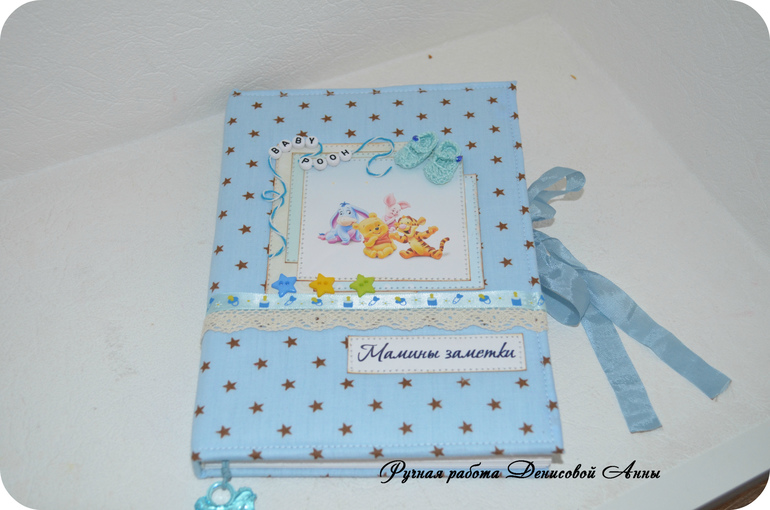 БлокнотыВот такой звездный дневничок мамины заметки "Винни Пух" у меня получился- блокнот с нуля формата А5, коптский переплет, имитация каптала, мягкая обложка, 100 % хлопок, закладка в виде акриловой лошадки-качалки на вощеном шнуре, закрывается на шебби ленту, около 80 листов. В дневничок можно вносить данные о развитии малыша до года (сел, встал, пошел, график роста и веса, график появления зубов, отпечаток ручки и ножки, первый ДР, первый НГ, крещение и т.д), предусмотрен кармашек для бирочки из роддома, около 30 мест для фотографий, 1 раздел, после которого идут линованные странички для записей мамы. С радостью выполню для вас подобный или любой другой.