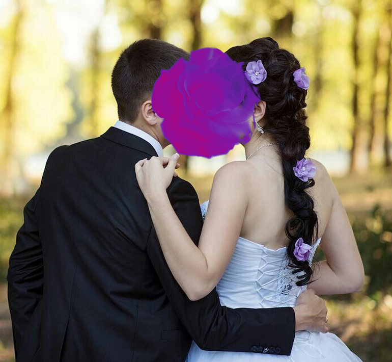 Свадьба была в фиолетовом цвете, поэтому и атрибутика вся такая