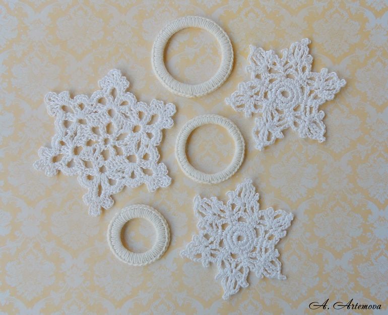 Вообщем мне тех что 11 см - 5 шт белых, если есть возможность другого цвета близкого к белому - кремовый или бежевый, или бледно-бледно фиолетовый - тоже 5 шт. И маленьких тоже белых - 5 шт, и другого цвета 5 шт. Только пожелание: маленькие большие похожи на снежинки - с остренькими уголками, а я хотела бы более круглые получились. Кажется все пока.