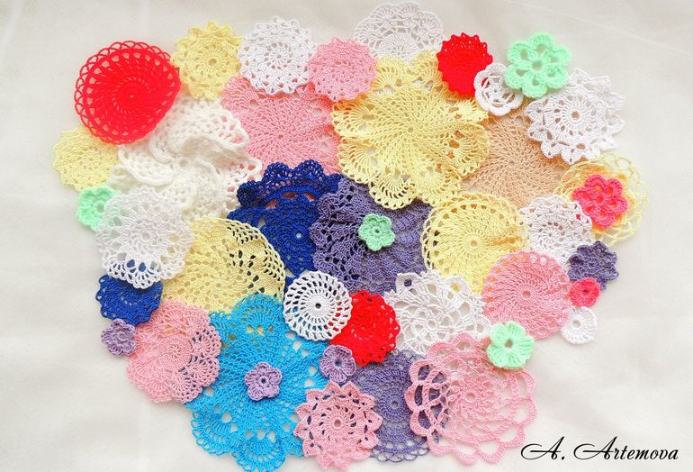 Салфетки размером по 11 см - 40р шт., а вот самые маленькие по 20р шт. Пишите сколько нужно, я свяжу.