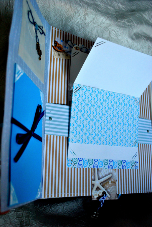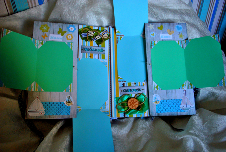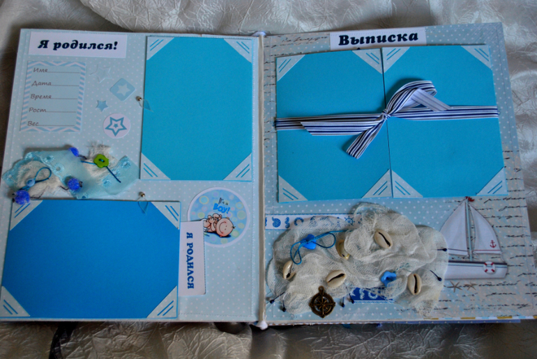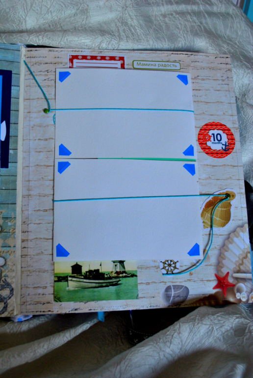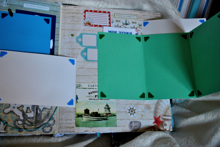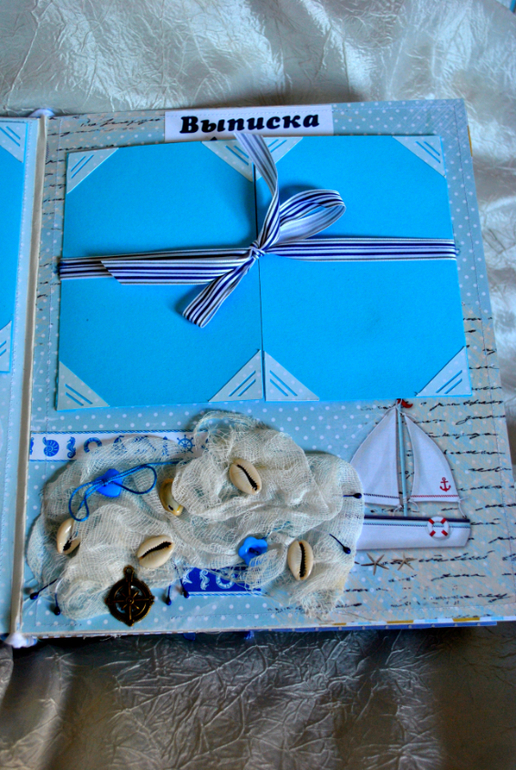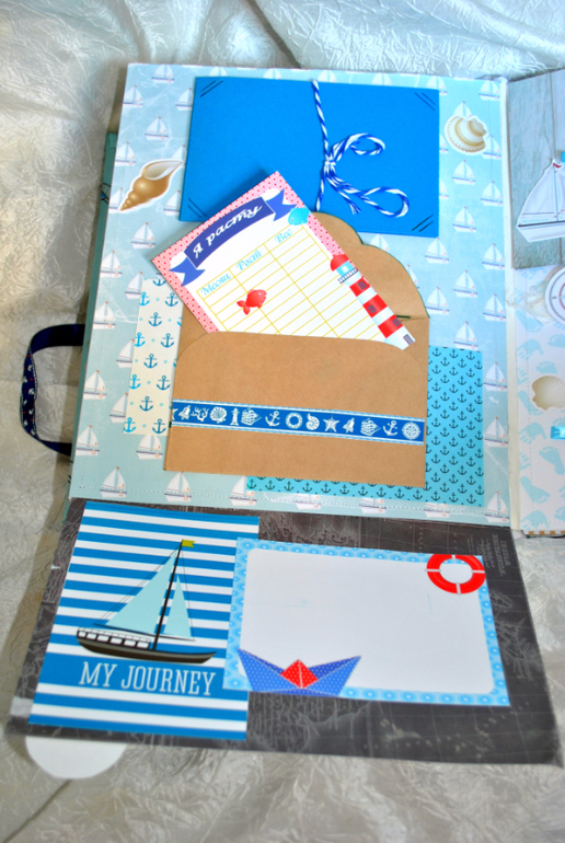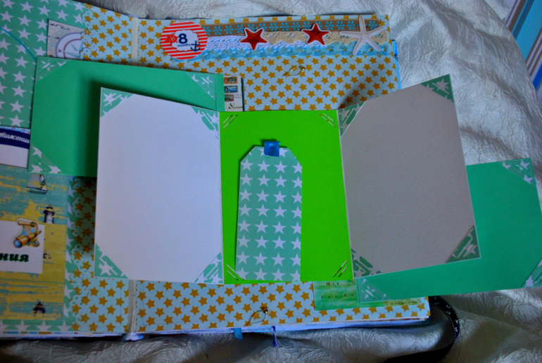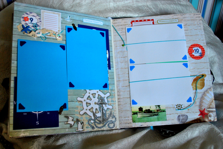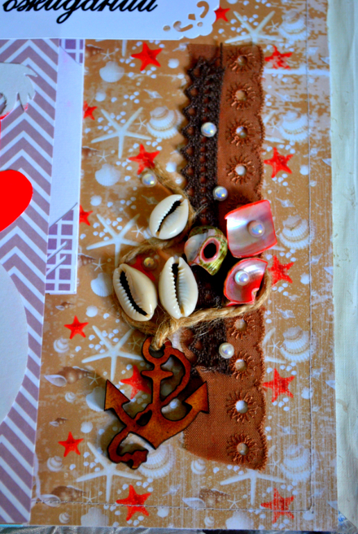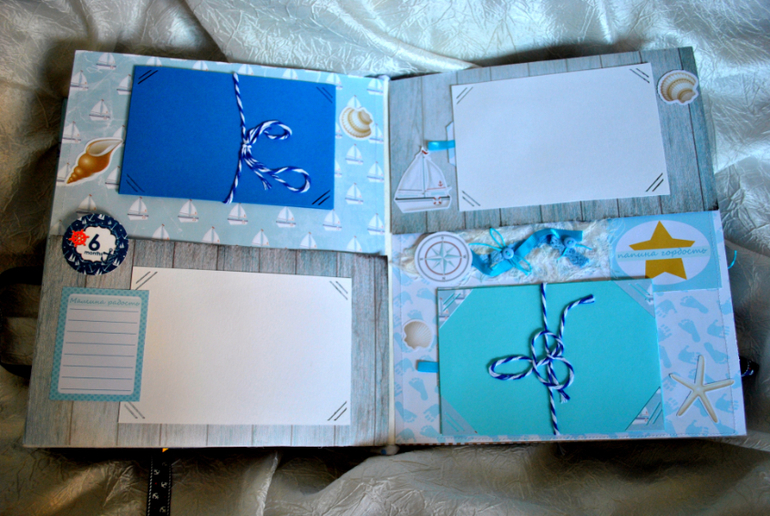 Огромный труд для первого раза! Вы - умничка! У меня только одно замечание - намешаны коллекции бумаги и стили) Если вы выбираете морскую тематику, надо выбрать основные цвета - белый, синий, красный и можно кое-где их разбавить коричневым и песочно-желтым. Или это яркий альбом в американском стиле, но без намеков на море и ракушки) Но в целом - отлично!!!