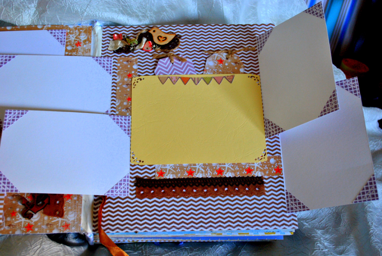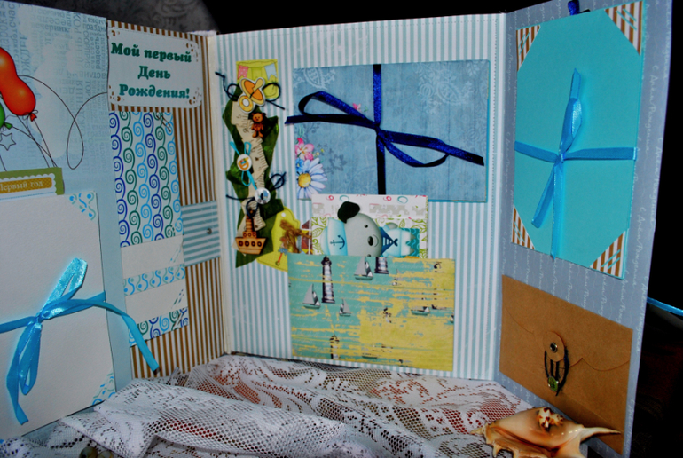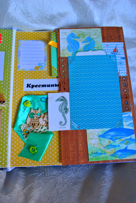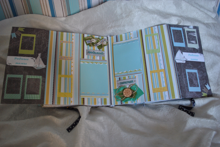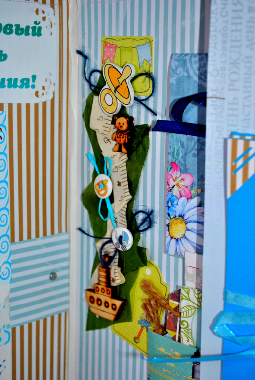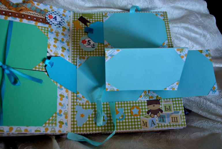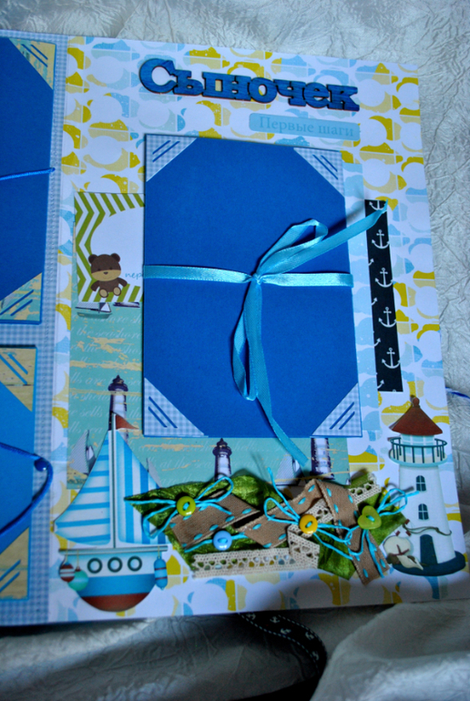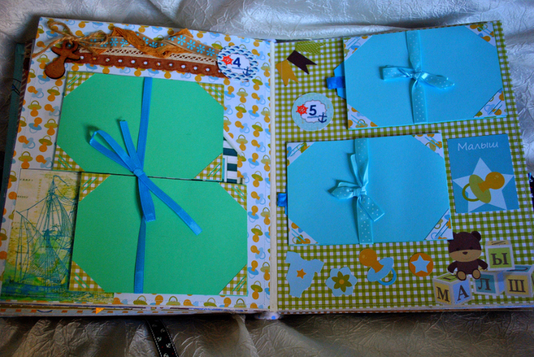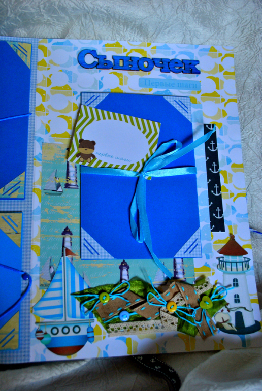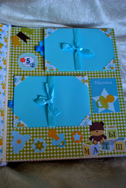 Олечка,ты большая умница. Я тоже начала делать первый альбом сынуле. Радует,что не только я делаю альбом с фото и немного декора, а не наоборот- много декора и всего 30-40 фото