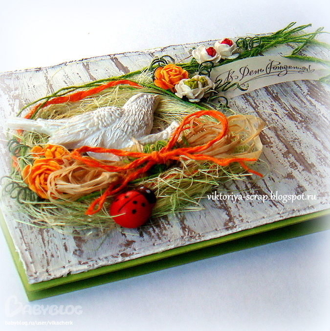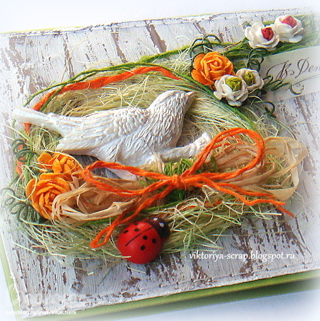 Надпись Артема Лебедева. А остальные подробности создания этой совсем непохожей на мои предыдущие работы открытки смотрите в моем блоге. Там я описала подробно, как создавала фон (недокрашенный забор), какие материалы использовала и в каких заданиях участвую.