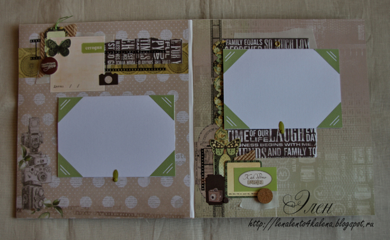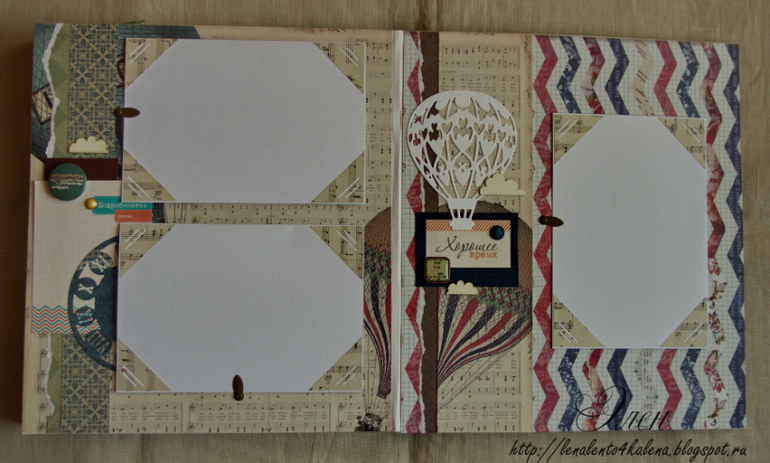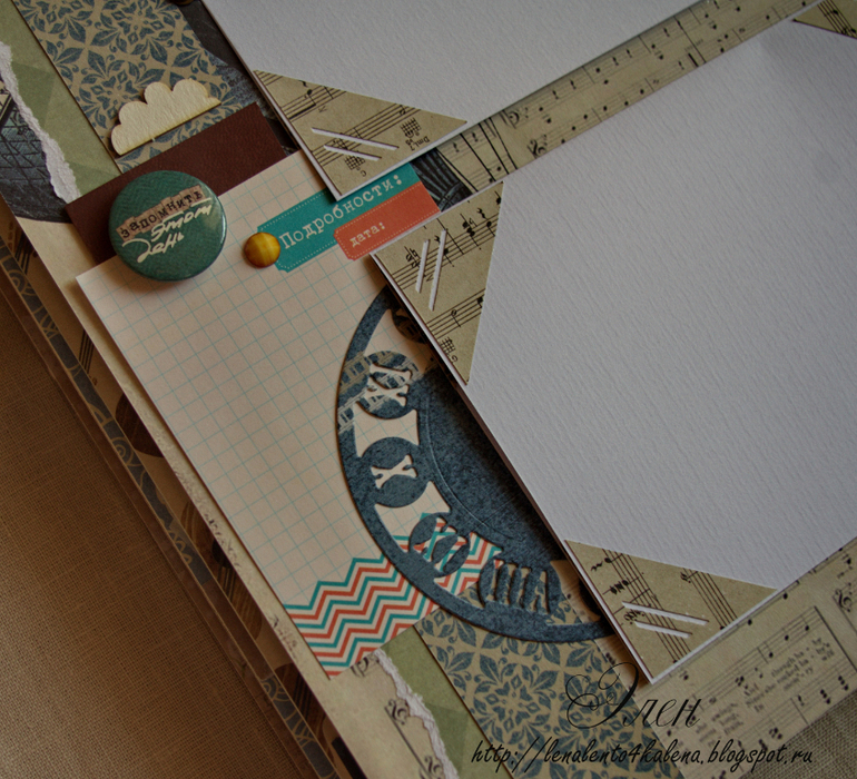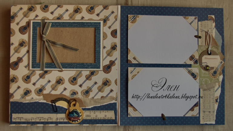Альбом 24х27, 10 страниц. Альбом из разных коллекций бумаги с тематическими разворотами: морской для фото с отдыха, с гитарами- главное увлечение мальчика.